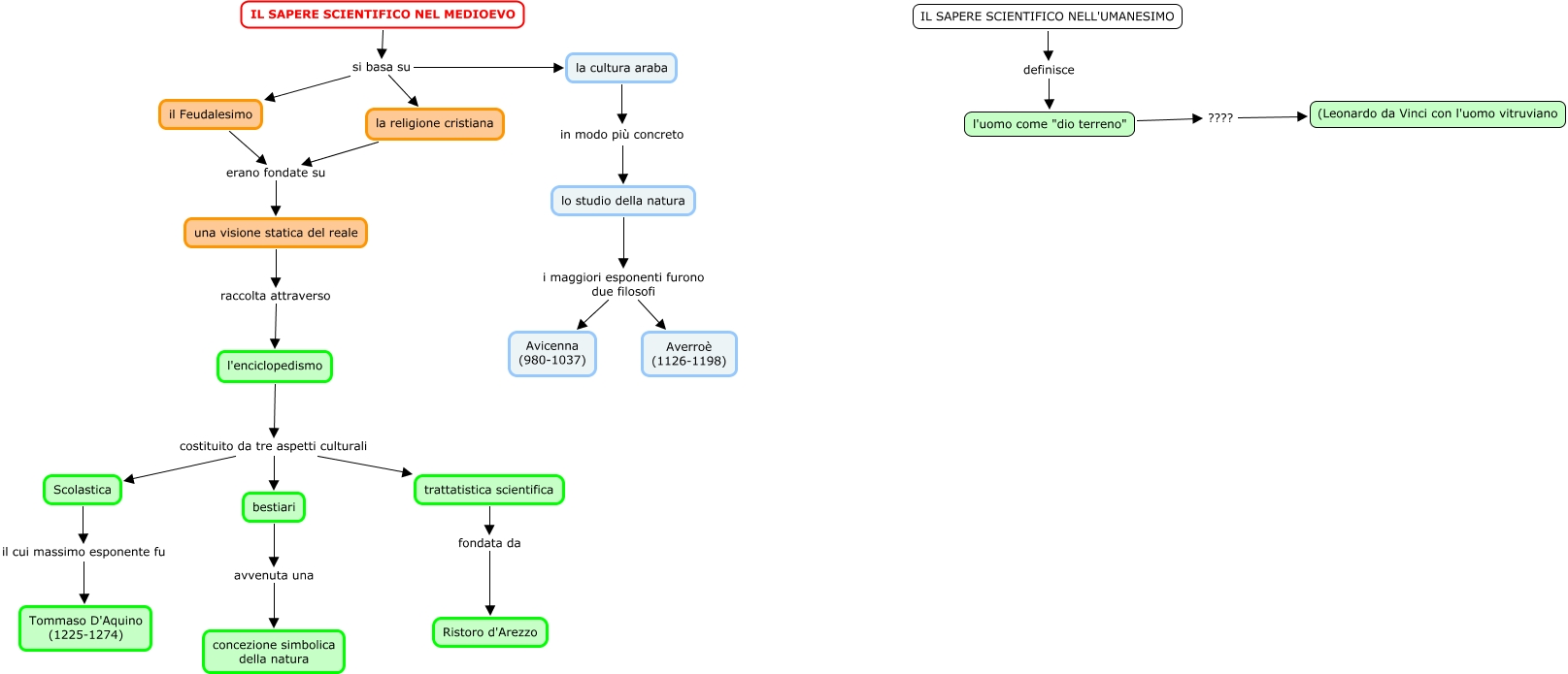 Questa Cmap, creata con IHMC CmapTools, contiene informazioni relative a: Bradascio_Saperi scientifici, la religione cristiana erano fondate su una visione statica del reale, il Feudalesimo erano fondate su una visione statica del reale, l'enciclopedismo costituito da tre aspetti culturali Scolastica, IL SAPERE SCIENTIFICO NELL'UMANESIMO definisce l'uomo come "dio terreno", Scolastica il cui massimo esponente fu Tommaso D'Aquino (1225-1274), lo studio della natura i maggiori esponenti furono due filosofi Avicenna (980-1037), trattatistica scientifica fondata da Ristoro d'Arezzo, bestiari avvenuta una concezione simbolica della natura, IL SAPERE SCIENTIFICO NEL MEDIOEVO si basa su la religione cristiana, IL SAPERE SCIENTIFICO NEL MEDIOEVO si basa su la cultura araba, lo studio della natura i maggiori esponenti furono due filosofi Averroè (1126-1198), la cultura araba in modo più concreto lo studio della natura, l'enciclopedismo costituito da tre aspetti culturali bestiari, IL SAPERE SCIENTIFICO NEL MEDIOEVO si basa su il Feudalesimo, l'uomo come "dio terreno" ???? (Leonardo da Vinci con l'uomo vitruviano, una visione statica del reale raccolta attraverso l'enciclopedismo, l'enciclopedismo costituito da tre aspetti culturali trattatistica scientifica