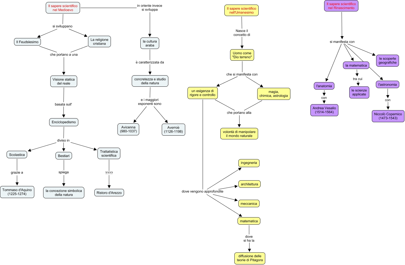 Questa Cmap, creata con IHMC CmapTools, contiene informazioni relative a: Fontana_SaperiScientificici, Il sapere scientifico nel Rinascimento si manifesta con l'anatomia, concretezza e studio della natura e i maggiori esponenti sono Averroè (1126-1198), Visione statica del reale basata sull' Enciclopedismo, un esigenza di rigore e controllo dove vengono approfondite ingegneria, Il sapere scientifico nell'Umanesimo Nasce il concetto di Uomo come "Dio terreno", la matematica tra cui le scienze applicate, Il sapere scientifico nel Rinascimento si manifesta con l'astronomia, Enciclopedismo diviso in Bestiari, Il sapere scientifico nel Medioevo si sviluppano La religione cristiana, l'anatomia con Andrea Vesalio (1514-1564), Uomo come "Dio terreno" che si manifesta con un esigenza di rigore e controllo, Uomo come "Dio terreno" che si manifesta con magia, chimica, astrologia, un esigenza di rigore e controllo dove vengono approfondite matematica, La religione cristiana che portano a una Visione statica del reale, Scolastica grazie a Tommaso d'Aquino (1225-1274), Il Feudslesimo che portano a una Visione statica del reale, Il sapere scientifico nel Medioevo si sviluppano Il Feudslesimo, Enciclopedismo diviso in Trattatistica scientifica, Il sapere scientifico nel Medioevo in oriente invece si sviluppa la cultura araba, Trattatistica scientifica ???? Ristoro d'Arezzo