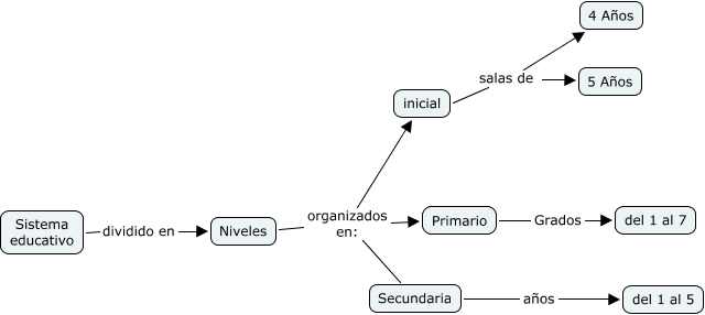 This Concept Map, created with IHMC CmapTools, has information related to: sistema educativo niveles basicos, inicial salas de 4 Años, inicial salas de 5 Años, Secundaria años del 1 al 5, Niveles organizados en: Primario, Niveles organizados en: Secundaria, Niveles organizados en: inicial, Primario Grados del 1 al 7, Sistema educativo dividido en Niveles