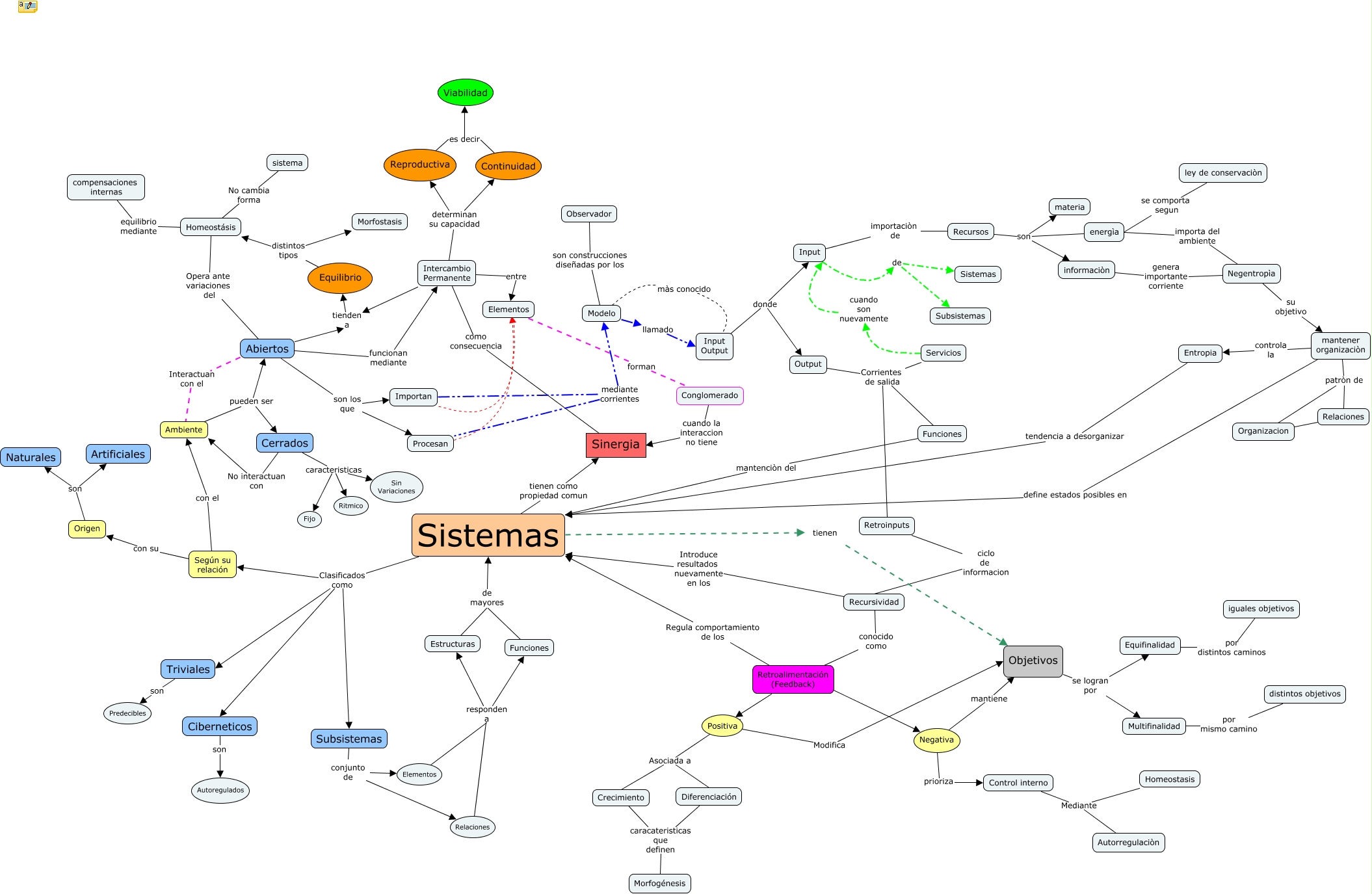 Este Cmap, tiene información relacionada con: ISTA, Positiva Modifica Objetivos, Abiertos son los que Importan, mantener organizaciòn controla la Entropia, Importan mediante corrientes Procesan, Negentropìa su objetivo mantener organizaciòn, Reproductiva es decir Viabilidad, Según su relación con el Ambiente, Elementos forman Conglomerado, Homeostásis Opera ante variaciones del Abiertos, Funciones mantenciòn del Sistemas, Output Corrientes de salida Servicios, Cerrados No interactuan con Ambiente, Funciones de mayores Sistemas, Output Corrientes de salida Retroinputs, Ciberneticos son Autoregulados, Según su relación con su Origen, Equilibrio distintos tipos Homeostásis, Input Output donde Input, Recursividad Introduce resultados nuevamente en los Sistemas, Intercambio Permanente determinan su capacidad Continuidad