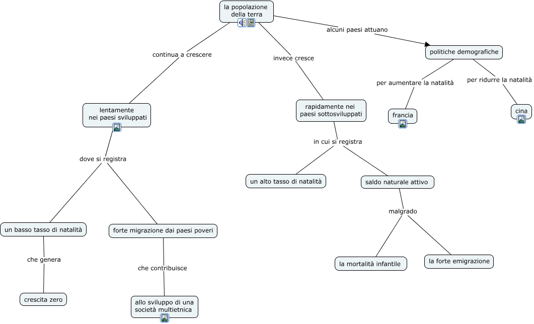 Questa Cmap, creata con IHMC CmapTools, contiene informazioni relative a: la popolazione della terra, rapidamente nei paesi sottosviluppati in cui si registra saldo naturale attivo, un basso tasso di natalità che genera crescita zero, saldo naturale attivo malgrado la forte emigrazione, politiche demografiche per aumentare la natalità francia, la popolazione della terra continua a crescere lentamente nei paesi sviluppati, forte migrazione dai paesi poveri che contribuisce allo sviluppo di una società multietnica, rapidamente nei paesi sottosviluppati in cui si registra un alto tasso di natalità, saldo naturale attivo malgrado la mortalità infantile, politiche demografiche per ridurre la natalità cina, la popolazione della terra invece cresce rapidamente nei paesi sottosviluppati, lentamente nei paesi sviluppati dove si registra un basso tasso di natalità, la popolazione della terra alcuni paesi attuano politiche demografiche, lentamente nei paesi sviluppati dove si registra forte migrazione dai paesi poveri