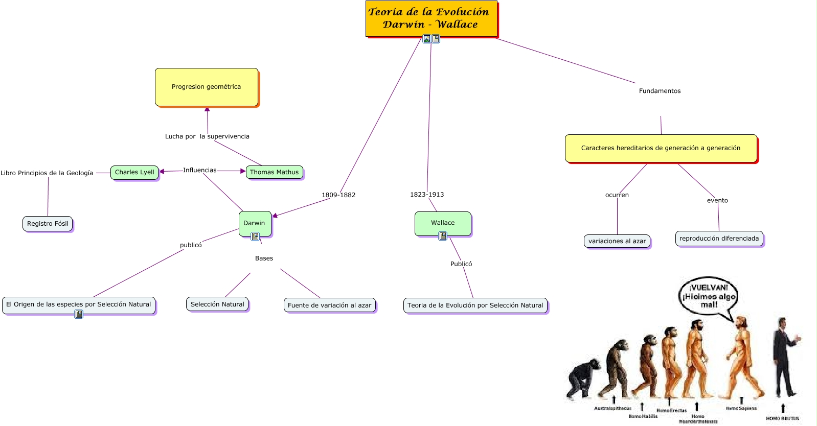 Este Cmap, tiene información relacionada con: Teoria_de_la_Evolución_Grupo_2aportes gráf.cmap, Teoria de la Evolución Darwin - Wallace 1823-1913 Wallace, Caracteres hereditarios de generación a generación evento reproducción diferenciada, Wallace Publicó Teoria de la Evolución por Selección Natural, Charles Lyell Libro Principios de la Geología Registro Fósil, Darwin Influencias Thomas Mathus, Thomas Mathus Lucha por la supervivencia Progresion geométrica, Darwin publicó El Origen de las especies por Selección Natural, Teoria de la Evolución Darwin - Wallace 1809-1882 Darwin, Darwin Influencias Charles Lyell, Darwin Bases Fuente de variación al azar, Teoria de la Evolución Darwin - Wallace Fundamentos Caracteres hereditarios de generación a generación, Darwin Bases Selección Natural, Caracteres hereditarios de generación a generación ocurren variaciones al azar
