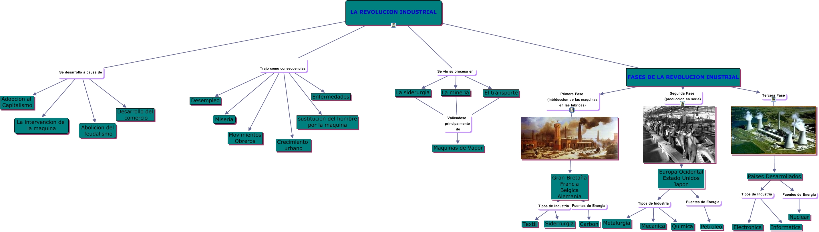 Este Cmap, tiene información relacionada con: Revolucion industrial, Gran Bretaña Francia Belgica Alemania Fuentes de Energia Carbon, LA REVOLUCION INDUSTRIAL Trajo como consecuencias Desempleo, Paises Desarrollados Tipos de Industria Informatica, LA REVOLUCION INDUSTRIAL Se desarrollo a causa de Adopcion al Capitalismo, Europa Ocidental Estado Unidos Japon Tipos de Industria Metalurgia, Europa Ocidental Estado Unidos Japon Tipos de Industria Quimica, LA REVOLUCION INDUSTRIAL Trajo como consecuencias Miseria, LA REVOLUCION INDUSTRIAL Se desarrollo a causa de La intervencion de la maquina, Paises Desarrollados Tipos de Industria Electronica, LA REVOLUCION INDUSTRIAL Se vio su proceso en La mineria, Gran Bretaña Francia Belgica Alemania Tipos de Industria Siderrurgia, LA REVOLUCION INDUSTRIAL Trajo como consecuencias Movimientos Obreros, Gran Bretaña Francia Belgica Alemania Tipos de Industria Textil, LA REVOLUCION INDUSTRIAL Trajo como consecuencias sustitucion del hombre por la maquina, La mineria Valiendose principalmente de Maquinas de Vapor, LA REVOLUCION INDUSTRIAL Se desarrollo a causa de Abolicion del feudalismo, LA REVOLUCION INDUSTRIAL Trajo como consecuencias Enfermedades, La mineria Valiendose principalmente de El transporte, FASES DE LA REVOLUCION INUSTRIAL Tercera Fase Paises Desarrollados, FASES DE LA REVOLUCION INUSTRIAL Primera Fase (intriduccion de las maquinas en las fabricas) Gran Bretaña Francia Belgica Alemania