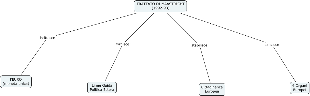 Questa Cmap, creata con IHMC CmapTools, contiene informazioni relative a: Trattato di Maastricht_bellinazzi, TRATTATO DI MAASTRICHT (1992-93) istituisce l'EURO (moneta unica), TRATTATO DI MAASTRICHT (1992-93) fornisce Linee Guida Politica Estera, TRATTATO DI MAASTRICHT (1992-93) sancisce 4 Organi Europei, TRATTATO DI MAASTRICHT (1992-93) stabilisce Cittadinanza Europea
