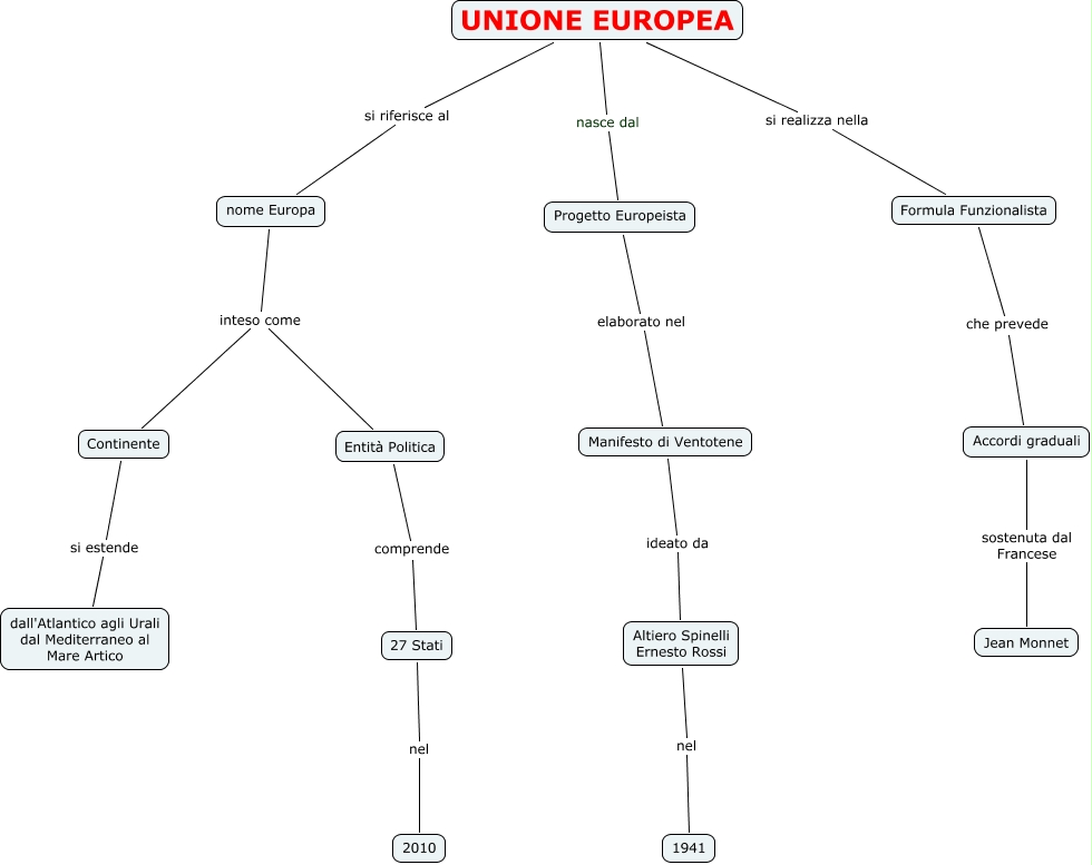 Questa Cmap, creata con IHMC CmapTools, contiene informazioni relative a: EUROPA UE Zanzottera, Formula Funzionalista che prevede Accordi graduali, UNIONE EUROPEA nasce dal Progetto Europeista, Entità Politica comprende 27 Stati, UNIONE EUROPEA si realizza nella Formula Funzionalista, Altiero Spinelli Ernesto Rossi nel 1941, 27 Stati nel 2010, UNIONE EUROPEA si riferisce al nome Europa, nome Europa inteso come Entità Politica, nome Europa inteso come Continente, Continente si estende dall'Atlantico agli Urali dal Mediterraneo al Mare Artico, Accordi graduali sostenuta dal Francese Jean Monnet, Progetto Europeista elaborato nel Manifesto di Ventotene, Manifesto di Ventotene ideato da Altiero Spinelli Ernesto Rossi