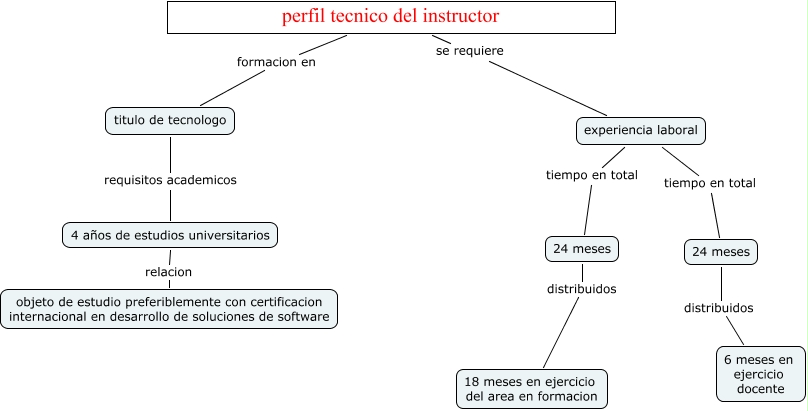 Este Cmap, tiene información relacionada con: kathe, perfil tecnico del instructor se requiere experiencia laboral, perfil tecnico del instructor formacion en titulo de tecnologo, 24 meses distribuidos 18 meses en ejercicio del area en formacion, experiencia laboral tiempo en total 24 meses, 4 años de estudios universitarios relacion objeto de estudio preferiblemente con certificacion internacional en desarrollo de soluciones de software, 24 meses distribuidos 6 meses en ejercicio docente, titulo de tecnologo requisitos academicos 4 años de estudios universitarios, experiencia laboral tiempo en total 24 meses