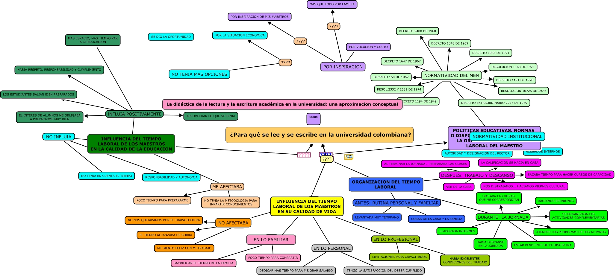 Este Cmap, tiene información relacionada con: Claudia Almonacid, INFLUENCIA DEL TIEMPO LABORAL DE LOS MAESTROS EN LA CALIDAD DE LA EDUCACION ME AFECTABA NO TENIA LA METODOLOGIA PARA IMPARTIR CONOCIMIENTOS, MAS ESPACIO, MAS TIEMPO PAR A LA EDUCACION INFLUIA POSITIVAMENTE LOS ESTUDIANTES SALIAN BIEN PREPARADOS, ORGANIZACION DEL TIEMPO LABORAL DESPUES: TRABAJO Y DESCANSO LA CALIFICACION SE HACIA EN CASA, ORGANIZACION DEL TIEMPO LABORAL DURANTE: LA JORNADA ELABORABA INFORMES, ORGANIZACION DEL TIEMPO LABORAL DURANTE: LA JORNADA HACIAMOS REUNIONES, ORGANIZACION DEL TIEMPO LABORAL DURANTE: LA JORNADA ATENDER LOS PROBLEMAS DE LOS ALUMNOS, ORGANIZACION DEL TIEMPO LABORAL DURANTE: LA JORNADA ESTAR PENDIENTE DE LA DISCIPLINA, ORGANIZACION DEL TIEMPO LABORAL ANTES: RUTINA PERSONAL Y FAMILIAR COSAS DE LA CASA Y LA FAMILIA, POLITICAS EDUCATIVAS, NORMAS O DISPOSICIONES QUE REGULARON LA ORGANIZACION DEL TIEMPO LABORAL DEL MAESTRO ???? RESOLUCION 1168 DE 1975, ORGANIZACION DEL TIEMPO LABORAL DURANTE: LA JORNADA DICTABA LAS HORAS QUE ME CORRESPONDIAN, NO AFECTABA ???? INFLUENCIA DEL TIEMPO LABORAL DE LOS MAESTROS EN SU CALIDAD DE VIDA, INFLUENCIA DEL TIEMPO LABORAL DE LOS MAESTROS EN LA CALIDAD DE LA EDUCACION NO INFLUIA NO TENIA EN CUENTA EL TIEMPO, POR INSPIRACION ???? MAS QUE TODO POR FAMILIA, INFLUENCIA DEL TIEMPO LABORAL DE LOS MAESTROS EN SU CALIDAD DE VIDA ???? SACRIFICAR EL TIEMPO DE LA FAMILIA, NO AFECTABA ???? ME SIENTO FELIZ CON MI TRABAJO, NO AFECTABA ???? EL TIEMPO ALCANZABA DE SOBRA, NO AFECTABA ???? NO NOS QUEJABAMOS POR EL TRABAJO EXTRA, POLITICAS EDUCATIVAS, NORMAS O DISPOSICIONES QUE REGULARON LA ORGANIZACION DEL TIEMPO LABORAL DEL MAESTRO ???? DECRETO 2400 DE 1968, POLITICAS EDUCATIVAS, NORMAS O DISPOSICIONES QUE REGULARON LA ORGANIZACION DEL TIEMPO LABORAL DEL MAESTRO ???? DECRETO 1191 DE 1978, ORGANIZACION DEL TIEMPO LABORAL ANTES: RUTINA PERSONAL Y FAMILIAR LEVANTADA MUY TEMPRANO