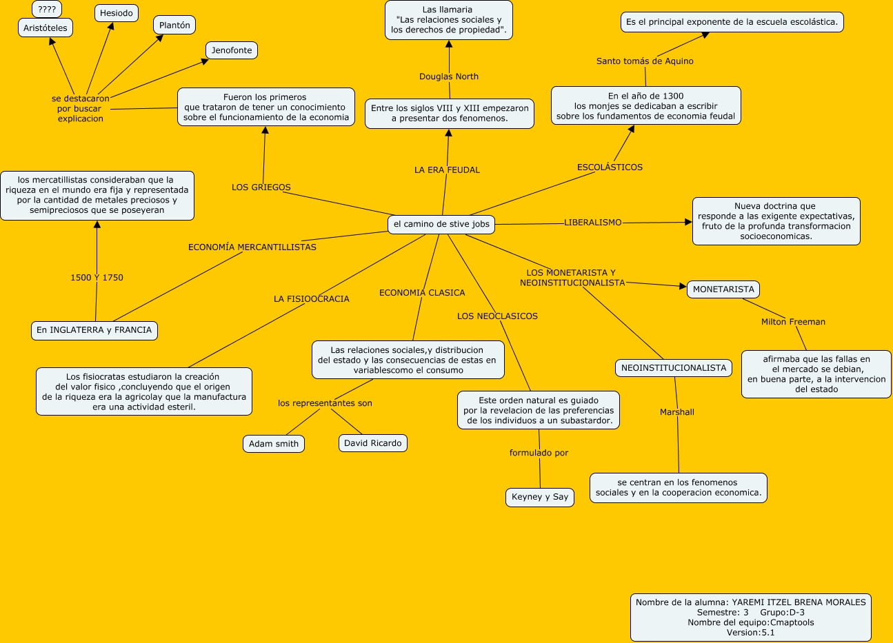 Este Cmap, tiene información relacionada con: mio, Este orden natural es guiado por la revelacion de las preferencias de los individuos a un subastardor. formulado por Keyney y Say, En el año de 1300 los monjes se dedicaban a escribir sobre los fundamentos de economia feudal Santo tomás de Aquino Es el principal exponente de la escuela escolástica., el camino de stive jobs LA ERA FEUDAL Entre los siglos VIII y XIII empezaron a presentar dos fenomenos., Fueron los primeros que trataron de tener un conocimiento sobre el funcionamiento de la economia se destacaron por buscar explicacion Aristóteles, Aristóteles ???? ????, el camino de stive jobs LOS GRIEGOS Fueron los primeros que trataron de tener un conocimiento sobre el funcionamiento de la economia, el camino de stive jobs ESCOLÁSTICOS En el año de 1300 los monjes se dedicaban a escribir sobre los fundamentos de economia feudal, Las relaciones sociales,y distribucion del estado y las consecuencias de estas en variablescomo el consumo los representantes son David Ricardo, Fueron los primeros que trataron de tener un conocimiento sobre el funcionamiento de la economia se destacaron por buscar explicacion Hesiodo, Fueron los primeros que trataron de tener un conocimiento sobre el funcionamiento de la economia se destacaron por buscar explicacion Jenofonte, En INGLATERRA y FRANCIA 1500 Y 1750 los mercatillistas consideraban que la riqueza en el mundo era fija y representada por la cantidad de metales preciosos y semipreciosos que se poseyeran, el camino de stive jobs LOS MONETARISTA Y NEOINSTITUCIONALISTA NEOINSTITUCIONALISTA, el camino de stive jobs ECONOMÍA MERCANTILLISTAS En INGLATERRA y FRANCIA, el camino de stive jobs LOS MONETARISTA Y NEOINSTITUCIONALISTA MONETARISTA, el camino de stive jobs LIBERALISMO Nueva doctrina que responde a las exigente expectativas, fruto de la profunda transformacion socioeconomicas., Entre los siglos VIII y XIII empezaron a presentar dos fenomenos. Douglas North Las llamaria "Las relaciones sociales y los derechos de propiedad"., Las relaciones sociales,y distribucion del estado y las consecuencias de estas en variablescomo el consumo los representantes son Adam smith, NEOINSTITUCIONALISTA Marshall se centran en los fenomenos sociales y en la cooperacion economica., el camino de stive jobs ECONOMIA CLASICA Las relaciones sociales,y distribucion del estado y las consecuencias de estas en variablescomo el consumo, MONETARISTA Milton Freeman afirmaba que las fallas en el mercado se debian, en buena parte, a la intervencion del estado