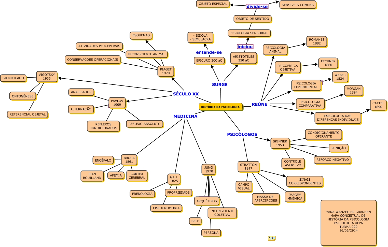 Este Cmap, tiene información relacionada con: opcion 1, BROCA 1861 ???? AFEMIA, EPICURO 300 aC entende-se - EIDOLA - SIMULACRA, PIAGET 1970 ???? ATIVIDADES PERCEPTIVAS, JUNG 1970 ???? PERSONA, GALL 1825 ???? FRENOLOGIA, HISTÓRIA DA PSICOLOGIA REÚNE PSICOLOGIA COMPARATIVA, PAVLOV 1909 ???? ALTERNAÇÃO, SKINNER 1953 ???? REFORÇO NEGATIVO, VIGOTSKY 1933 ???? SIGNIFICADO, STRATTON 1897 ???? CAMPO VISUAL, STRATTON 1897 ???? MASSA DE APERCEPÇÕES, OBJETO DE SENTIDO divide-se SENSÍVEIS COMUNS, JUNG 1970 ???? ARQUÉTIPOS, JUNG 1970 ???? SELF, HISTÓRIA DA PSICOLOGIA MEDICINA BROCA 1861, HISTÓRIA DA PSICOLOGIA SÉCULO XX VIGOTSKY 1933, HISTÓRIA DA PSICOLOGIA PSICÓLOGOS STRATTON 1897, PAVLOV 1909 ???? ANALISADOR, PIAGET 1970 I INCONSCIENTE ANIMAL, HISTÓRIA DA PSICOLOGIA SÉCULO XX PAVLOV 1909