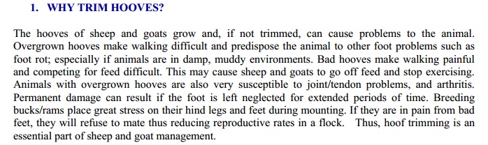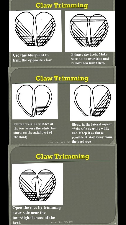 6 Common Causes of Lameness in Sheep.url Advantages, disadvantages and what you need to know about dairycow footbaths.url Bedding for horses.url BEDMAX_HealthandWelfare.pdf Biosecurity (quarentine new arrivals).jpg boots2.jpg Cattle Restraint.jpg Cattle restraint to prepare for hoof trimming.png Complications of hoof trimming.url Complications of poor hoof care.url DeLaval hoof care program.pdf Electric Hoof knife.jpg Electric Hoof Knife (video).url Evaluation of footbath products.jpg Foot Absceses in Sheep.url Footrot-in-Sheep-and-Goats.pdf Foot rot vs. scald.url Founder.url Frequency of Trimming Goats and Sheep.jpg Glossary A-D.jpg Glossary F-I.jpg Glossary I-W.jpg hoof_anatomyHorse.pdf Hoof_Tester.jpg Hoof Anatomy, Care and Management in Livestock.pdf Hoof block.jpg Hoof blocking.url Hoof clippers.jpg Hoof Diseases in Sheep.url Hoof Grinder.jpeg Hoof jack and rasp for horses.url Hoof knife.jpg Hoof Mapping for a horse (video).url Hoof Pick.jpg Hoof pick instructions for a horse (video).url hoof rasp goats.url Hoof trimming.jpg Hoof Trimming and Hoof Care.cmap Hoof trimming using a hoof knife with possible complications (video).url Instructions for using hoof testers (video).url Instructions how to use hoof clippers (video).url Lame cows cost money!.url llama manicure.jpg Mapping how to trim hooves 2.jpg Natural footrot control through breeding sheep with resistance.pdf Norring_et_al_2008.pdf Overgrown hooves.jpg Poor Nutrition and Equine Hooves.pdf Power grinder (video).url Power tools used for hoof trimming.jpg Preparing to apply a hoof block (video).url Prevention and control of Foot Problems in Dairy Cow.pdf Recognitionand Management of Pain caused by Foot Problems.url Responsibility as a Farmer Visiting Another Farm.url Restraint Goats.jpg Restraint Sheep.jpg Sand Bedding for cattle.url Solving hoof care problems Consultant shares footbath tips.url swava_zebra_feet.pdf Taking care of hooves reduces costs to the dairy industry- a study.pdf talk_to_the_hoof_tile_coaster.jpg Tetravet.JPG The bones.jpg The Corium.jpg The Hoof.jpg The Sole, White Line and the Toe.jpg ToeGranuloma.jpg Why trim sheep and goats hooves.jpg