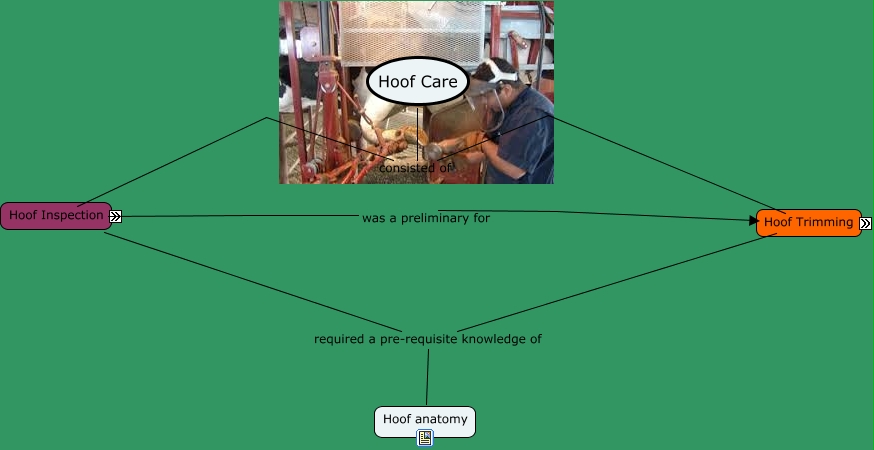 This Concept Map, created with IHMC CmapTools, has information related to: Lab 3, Lameness Has many causes some with specific signs e.g. Dropped Fetlock, Digit amputation has Pros and Cons Pros, Predisposing Factors in addition to Heat stroke, Arthodesis can be done by 2 approaches The Dorsal Approach, Treatment examples Block placement, Hoof Trimming involves knowing Complications, Hoof Trimming involves knowing Equipment, Equipment differs for Bovine & Equine, Digit amputation has Pros and Cons Cons, Hoof Trimming involves knowing Procedure, Abscesses which can be related to Diseases affecting the hoof, Manually which uses - Rasps - Knives (Right and Left sided) - Hoof Nippers - Hoof pick, Hoof Trimming involves knowing Management, Bovine & Equine can be done either Manually, Hoof Care consisted of Hoof Trimming, 2. Animal in motion in order to conduct a Lameness Assessment, Examination of hoof for pain and sensitivity requires proper Restraint, Equipment differs for Small Ruminants, Examination of hoof for pain and sensitivity is done by Physical Examination of Hoof, Hoof Inspection required a pre-requisite knowledge of Hoof anatomy