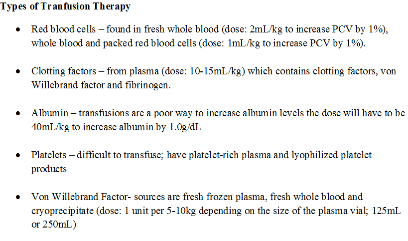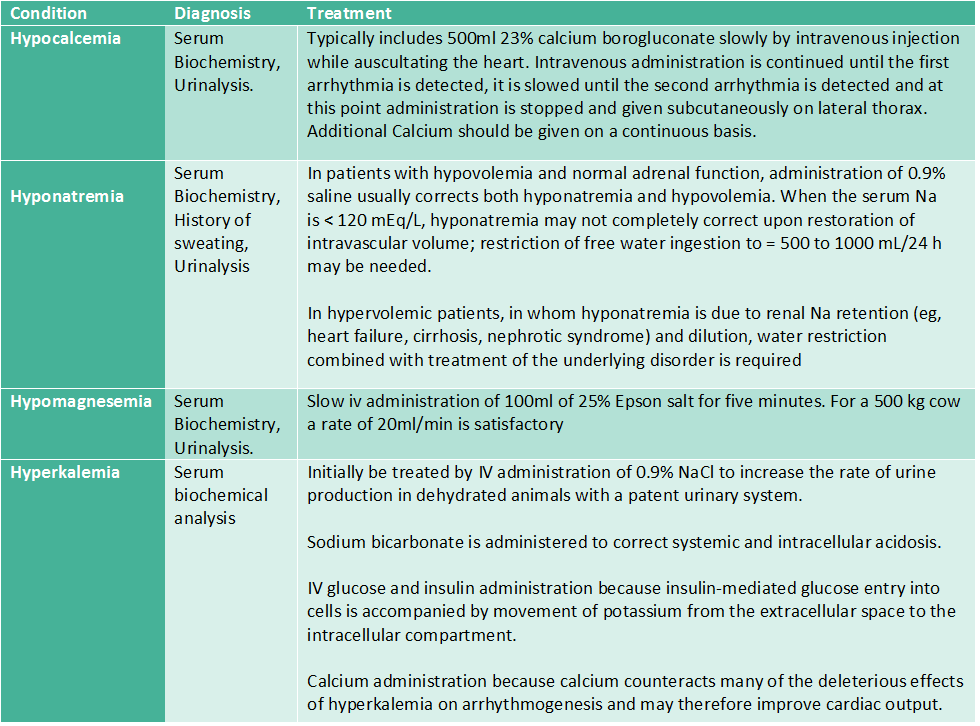 algorithm Assessing renal function.url Calculations for correcting metabolic acidosis.png Calculations for transfusion.png classification of acid-base disorders.jpg Daily rehydration requirement calculations.png fluid replacement calculation.png Fluid Therapy (cattle specific) reference.url Fluid therapy guidelines.url Hypovolemic shock reference.url Illustration of Fluid administration considerations.png Metabolic acidosis reference.url Metabolic alkalosis reference.url normal versus high anion gap schematic.jpg Notes for hypoglycemic dehydrated patients.png Notes on blood collection for transfusions.pdf ongoing fluid loss calculation.png Renal calculations.png Schematic showing overhydration types.jpg Table showing causes of metabolic acidosis.png Table showing causes of metabolic alkalosis.png Table showing degrees of dehydration.jpg Table showing diagnosis and treatment of electrolyte imbalances.png Table showing diagnostics for metabolic alkalosis and acidosis.png Table showing the types of shock.png Table showing transfusion products.png Table showing types of dehydration.jpg Types of blood transfusions.png Types of shock and their treatment.pdf
