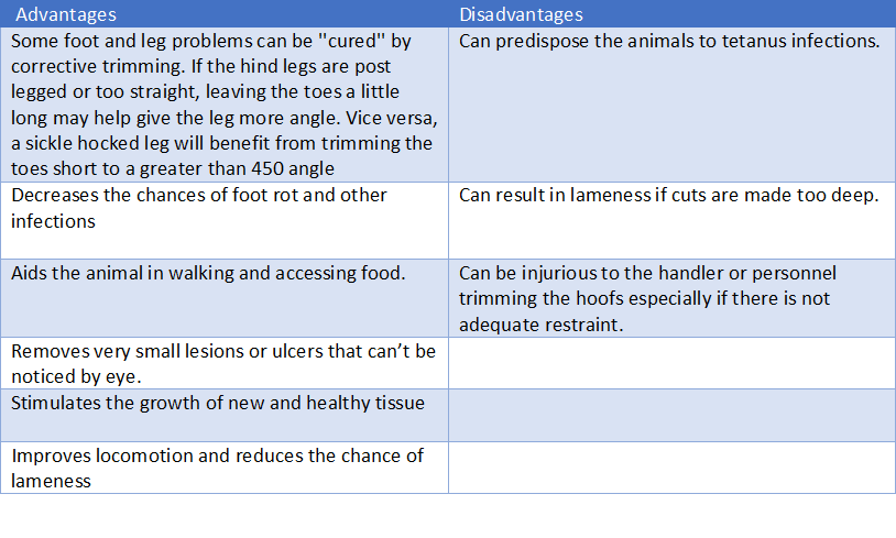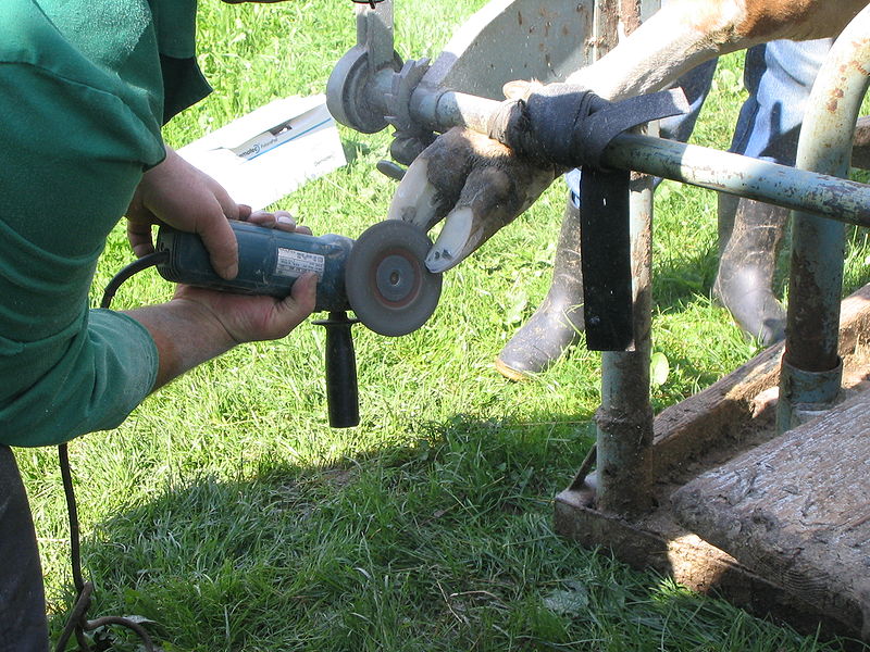Applying block video.url Comfort hoof care chute.url Labelled picture of hoof.png Manual trimming of cow hooves.url PDF - Foot Trimming Detailed Guide.pdf PDF - Foot Trimming Guide.pdf Picture illustrating use of grinder with adequate restraint.jpg Picture of chute used for hoof trimming.jpg Preparation and consideration before hoof trimming.png Schematic of manual hoof trimming with shears and knife.jpg Table showing proper technique for trimming ovine hooves.png Table showing pros and cons of hoof trimming.png Table showing tools used for trimming hooves.png Technique for trimming the hooves of cattle.png Trimming Cattle Hooves Guide.pdf Using hoof grinder.url