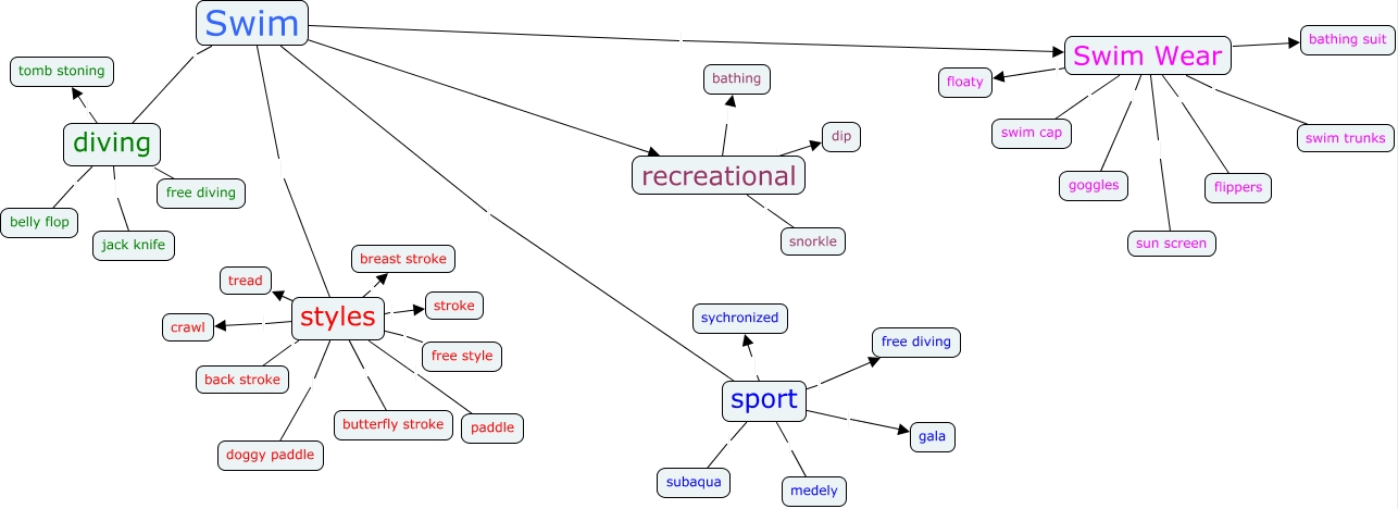 This Concept Map, created with IHMC CmapTools, has information related to: Jocelyn and Ashley's Map, Swim Wear swim cap, styles paddle, diving jack knife, recreational snorkle, Swim Wear goggles, diving free diving, Swim diving, sport sychronized, styles stroke, sport subaqua, sport medely, styles breast stroke, diving tomb stoning, sport free diving, styles tread, styles butterfly stroke, styles back stroke, Swim Wear sun screen, Swim Swim Wear, recreational dip