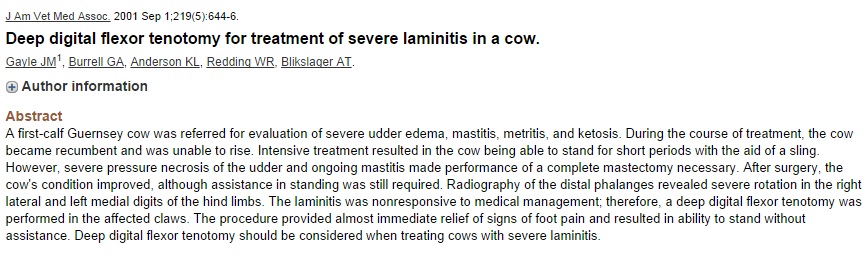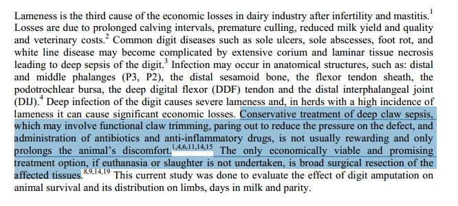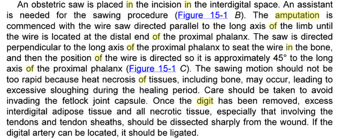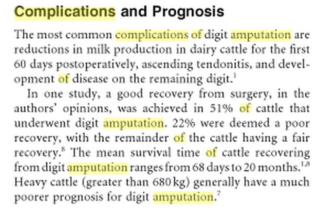 _claw_amputation_cattle.pdf a lame heifer.jpg Alternatives to amputation.jpg ASA Grade.jpg ASA GRADING.url Blood supply of the hoof.png buhner.jpg Callie Happy.jpg Cattle crush.jpg Client non compliance.url Complications and Prognosis.png Complications and Prognosis.jpg cow in stanchion.jpg Diagram of area to be resected.jpg Digital amputation for salvage of lame dairy animals.pdf Digit Amputation.cmap Digit amputation 1.png Digit amputation 2.png Dx of Footrot.jpg Foot rot.png Footrot diagnostics.url Girly Girl's New Leg.url History.docx Hoof_Anatomy_2.gif Hoof Anatomy, Care and Management in Livestock.pdf hoof anatomy 1.png hoof cleaning.jpg Horizontal Mattress Suture instructional (video).url Indications and complications.url Indications for Digit amputation.pdf Infectious-Footrot.pdf IVRA in cattle.url IVRA in cattle (video).url lame-cow.jpg Lameness rules of thumb.pdf Locomotion scoring.docx Management and complications.url nerve and blood supply to the feet.url Obstetric (gigli)wire.jpg Pain management for surgerical procedure.jpg Physical Exams of Cattle.pptx Post operative management.png Prosthesis.jpg Radiograph.png Resection of the distal interphalangeal joint in cattle.url Resection of the distal interphalangeal Joint in cattle.pdf Resection of the proximal or distal interphalangeal joint.url rope and pulley system.jpg septic arthritis.pdf septic arthritis in dairy catle.pdf Surgery of the bovine claw.url Surgey of the Bovine Claw.pdf Surgical technique.png Surgical technique2.png Surgical technique3.png SURGICAL TECHNIQUE FOR LIMB AMPUTATION IN RUMINANTS.pdf Tenotomy.jpg The Effect of Digit Amputation or Arthrodesis Surgery on Culling.pdf Various restraint methods.url Video- dairy locomotion scoring.url Video- horse.url