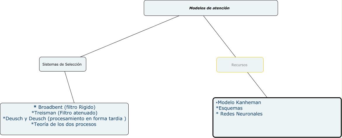 Este Cmap, tiene información relacionada con: tecnologia, Sistemas de Selección ???? * Broadbent (filtro Rigido) *Treisman (Filtro atenuado) *Deusch y Deusch (procesamiento en forma tardia ) *Teoría de los dos procesos, Modelos de atención ???? Sistemas de Selección, Modelos de atención ???? ????