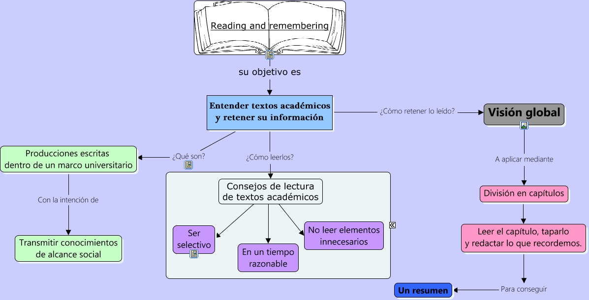 Este Cmap, tiene información relacionada con: Reading and remembering 2, Consejos de lectura de textos académicos En un tiempo razonable, Consejos de lectura de textos académicos Ser selectivo, Entender textos académicos y retener su información ¿Cómo leerlos? Consejos de lectura de textos académicos, Reading and remembering su objetivo es Entender textos académicos y retener su información, División en capítulos ???? Leer el capítulo, taparlo y redactar lo que recordemos., Consejos de lectura de textos académicos No leer elementos innecesarios, Entender textos académicos y retener su información ¿Qué son? Producciones escritas dentro de un marco universitario, Entender textos académicos y retener su información ¿Cómo retener lo leído? Visión global, Visión global A aplicar mediante División en capítulos, Leer el capítulo, taparlo y redactar lo que recordemos. Para conseguir Un resumen, Producciones escritas dentro de un marco universitario Con la intención de Transmitir conocimientos de alcance social