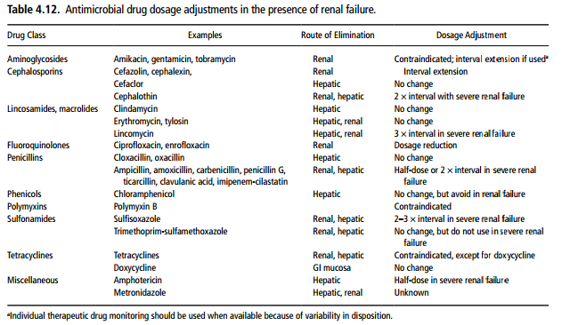 Table - antimicrobial dose adjustment in presence of renal failure.png