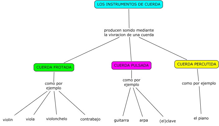 Este Cmap, tiene información relacionada con: INSTRUMENTOS DE CUERDA Miguel F, violonchelo como por ejemplo violin, CUERDA FROTADA como por ejemplo violin, viola como por ejemplo violin, violonchelo como por ejemplo contrabajo, CUERDA PULSADA como por ejemplo guitarra, LOS INSTRUMENTOS DE CUERDA producen sonido mediante la vivracion de una cuerda CUERDA PERCUTIDA, arpa como por ejemplo (el)clave, CUERDA FROTADA como por ejemplo contrabajo, LOS INSTRUMENTOS DE CUERDA producen sonido mediante la vivracion de una cuerda CUERDA FROTADA, LOS INSTRUMENTOS DE CUERDA producen sonido mediante la vivracion de una cuerda CUERDA PULSADA, viola como por ejemplo contrabajo, CUERDA PERCUTIDA como por ejemplo el piano, CUERDA PULSADA como por ejemplo (el)clave, arpa como por ejemplo guitarra