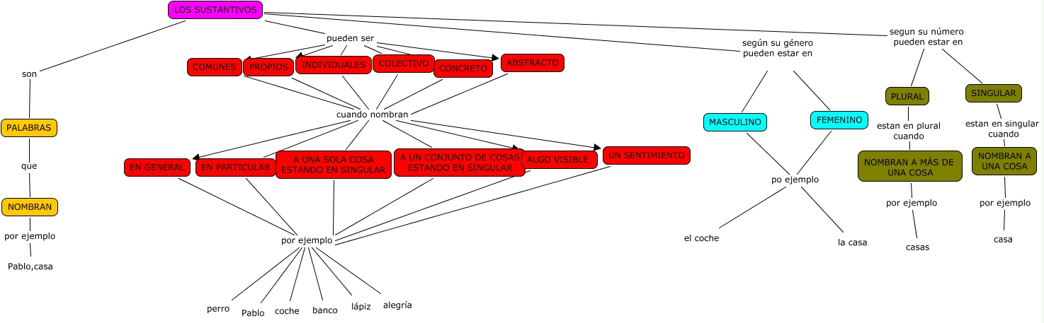 Este Cmap, tiene información relacionada con: LOS SUSTANTIVOS-Pablo, INDIVIDUALES cuando nombran A UN CONJUNTO DE COSAS ESTANDO EN SINGULAR, INDIVIDUALES cuando nombran EN PARTICULAR, A UNA SOLA COSA ESTANDO EN SINGULAR por ejemplo perro, UN SENTIMIENTO por ejemplo coche, COMUNES cuando nombran UN SENTIMIENTO, ABSTRACTO cuando nombran ALGO VISIBLE, CONCRETO cuando nombran A UNA SOLA COSA ESTANDO EN SINGULAR, EN GENERAL por ejemplo alegría, COLECTIVO cuando nombran EN PARTICULAR, EN PARTICULAR por ejemplo lápiz, EN PARTICULAR por ejemplo perro, LOS SUSTANTIVOS pueden ser INDIVIDUALES, PROPIOS cuando nombran A UNA SOLA COSA ESTANDO EN SINGULAR, NOMBRAN A MÁS DE UNA COSA por ejemplo casas, EN GENERAL por ejemplo coche, ALGO VISIBLE por ejemplo coche, CONCRETO cuando nombran EN GENERAL, PROPIOS cuando nombran EN GENERAL, NOMBRAN A UNA COSA por ejemplo casa, LOS SUSTANTIVOS pueden ser COLECTIVO