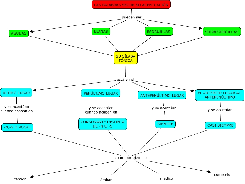 Este Cmap, tiene información relacionada con: LAS PALABRAS SEGÚN SU ACENTUACIÓN-Diego y Lucía F, -N,-S O VOCAL como por ejemplo médico, -N,-S O VOCAL como por ejemplo camión, CASI SIEMPRE como por ejemplo ámbar, EL ANTERIOR LUGAR AL ANTEPENÚLTIMO y se acentúan CASI SIEMPRE, ÚLTIMO LUGAR y se acentúan cuando acaban en -N,-S O VOCAL, SU SÍLABA TÓNICA está en el ANTEPENÚLTIMO LUGAR, SU SÍLABA TÓNICA está en el PENÚLTIMO LUGAR, ESDRÚJULAS su SU SÍLABA TÓNICA, CONSONANTE DISTINTA DE -N O -S como por ejemplo médico, LAS PALABRAS SEGÚN SU ACENTUACIÓN pueden ser ESDRÚJULAS, -N,-S O VOCAL como por ejemplo cómetelo, PENÚLTIMO LUGAR y se acentúan cuando acaban en CONSONANTE DISTINTA DE -N O -S, SIEMPRE como por ejemplo médico, CASI SIEMPRE como por ejemplo cómetelo, ANTEPENÚLTIMO LUGAR y se acentúan SIEMPRE, SIEMPRE como por ejemplo ámbar, CASI SIEMPRE como por ejemplo camión, SOBRESDRÚJULAS su SU SÍLABA TÓNICA, CONSONANTE DISTINTA DE -N O -S como por ejemplo ámbar, SIEMPRE como por ejemplo camión