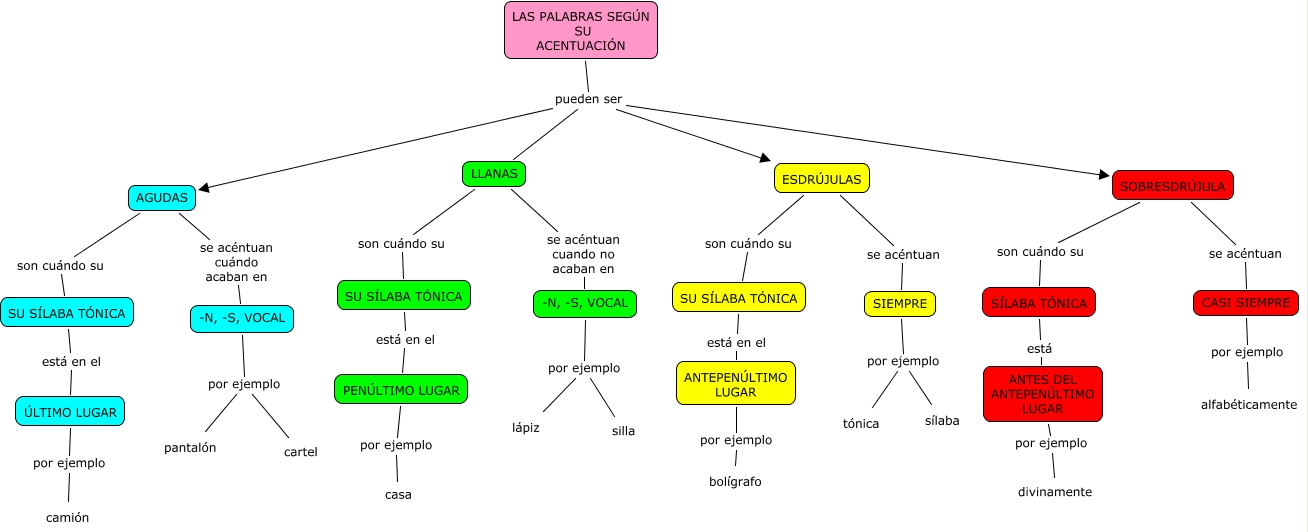 Este Cmap, tiene información relacionada con: LAS PALABRAS SEGÚN SE ACENTUACIÓN-Lucía M, LAS PALABRAS SEGÚN SU ACENTUACIÓN pueden ser LLANAS, CASI SIEMPRE por ejemplo alfabéticamente, AGUDAS son cuándo su SU SÍLABA TÓNICA, SOBRESDRÚJULA son cuándo su SÍLABA TÓNICA, SU SÍLABA TÓNICA está en el ANTEPENÚLTIMO LUGAR, ESDRÚJULAS son cuándo su SU SÍLABA TÓNICA, SÍLABA TÓNICA está ANTES DEL ANTEPENÚLTIMO LUGAR, SU SÍLABA TÓNICA está en el ÚLTIMO LUGAR, SOBRESDRÚJULA se acéntuan CASI SIEMPRE, LAS PALABRAS SEGÚN SU ACENTUACIÓN pueden ser AGUDAS, LLANAS son cuándo su SU SÍLABA TÓNICA, -N, -S, VOCAL por ejemplo cartel, LAS PALABRAS SEGÚN SU ACENTUACIÓN pueden ser SOBRESDRÚJULA, LLANAS se acéntuan cuando no acaban en -N, -S, VOCAL, LAS PALABRAS SEGÚN SU ACENTUACIÓN pueden ser ESDRÚJULAS, -N, -S, VOCAL por ejemplo silla, ANTEPENÚLTIMO LUGAR por ejemplo bolígrafo, AGUDAS se acéntuan cuándo acaban en -N, -S, VOCAL, SU SÍLABA TÓNICA está en el PENÚLTIMO LUGAR, ANTES DEL ANTEPENÚLTIMO LUGAR por ejemplo divinamente