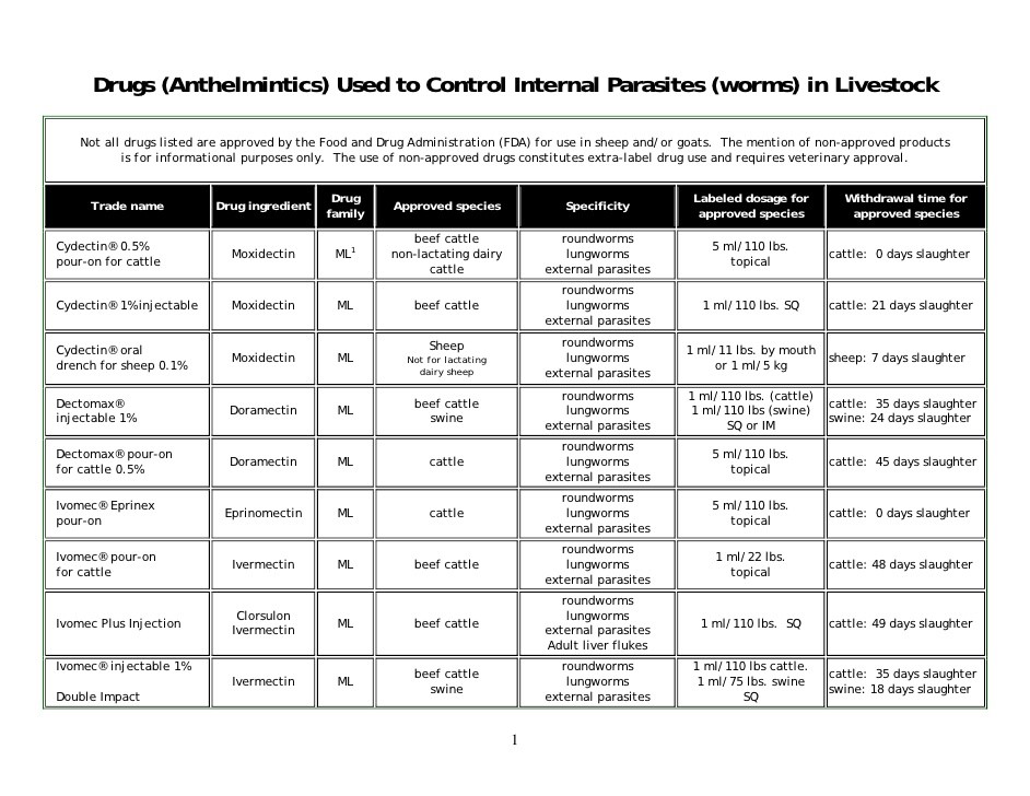 A Guide to Heartworm Treatment.pdf A Guide to Parasite Control in Farm Animals – Present and Future.pdf Anthelmintic resistance on sheep farms factsheet.pdf Canine Heartworm Disease (Dirofilariasis) Factsheet.pdf Classes of macrocyclic lactones.jpg Drugs used to control internal parasites in livestock.jpg FDA-approved antihelminths for goats.jpg FDA-approved antihelminths for sheep.jpg Heartworm Disease in Cats - Merck Manual.url Hypoderma spp - Merck Manual.url Interactive Parasites - Toxocariasis ( Roundworm Infection) factsheet.url Macrocyclic Lactones - Merck Manual.url Overview of Heartworm Disease.url Pharmaceutical information on Drontal Plus Taste Tabs for Animal Use - Drugs.pdf Quick details on specific anticestodal drug.pdf Quick quiz on Anticestode and antitrematode use in veterinary medicine.pdf Withdrawal periods for FDA-approved antihelminths for sheep and goat.jpg