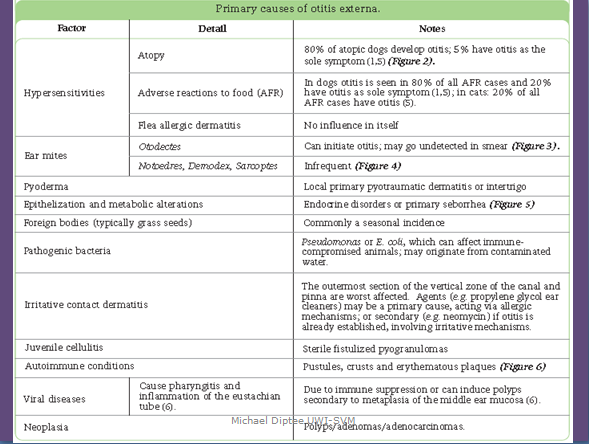 Advances in Technology - How to use an iPhone Otoscope - YouTube.html Aetiology of Otitis Externa.png Algorithm on how to handle Otitis Externa.png Cat Head Tilt.jpg Causes and Factors - Otitis Externa.png Client Education.png Client Education 2.png Clinical Signs.png Diagnosis.pdf Dog Ears.jpg Ear Cleaning.jpg Ear Image.jpg Guidelines for Treating Otitis Externa 1.png Malassezia.jpg Marked Erythema.jpg Otitis Externa.jpg Otitis Externa Protocol.png Otoscopic Ear Canal Images.png Perpetuating Factors of Otitis Externa.png Physical Exam.png Predisposing Factors of Otitis Externa.png Predisposing Factors of Otitis Externa 2.jpg Primary Causes of Otitis Externa.png Summary of Otitis Interna.pdf Summary of Otitis Media.pdf Treatment.pdf Types of Exudate.png Video Otoscopy - YouTube.html