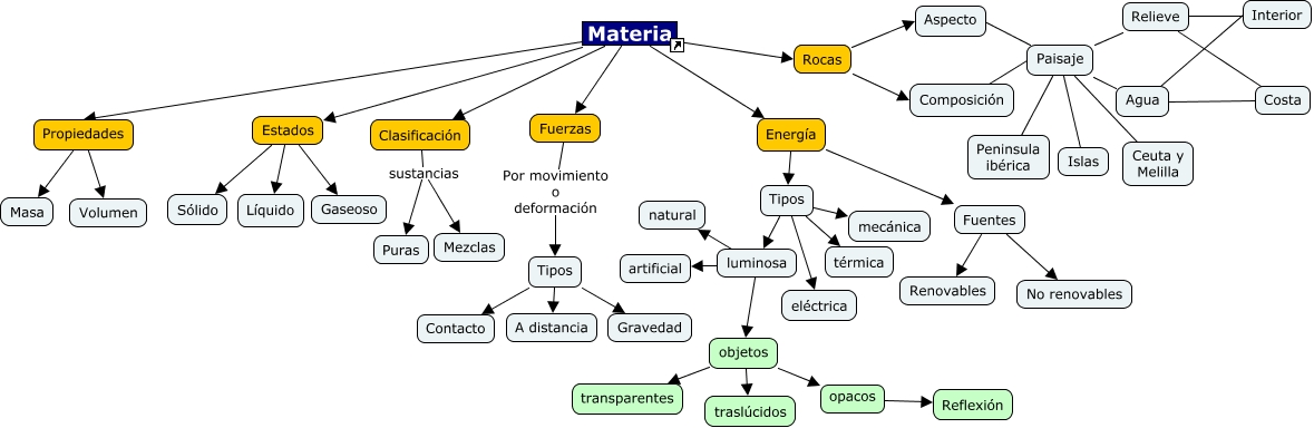 Este Cmap, tiene información relacionada con: cono4_Materia, Paisaje Agua, Estados Gaseoso, Materia Estados, Tipos mecánica, Agua Costa, Estados Sólido, Agua Interior, Paisaje Relieve, Rocas Composición, Tipos luminosa, Clasificación sustancias Mezclas, Paisaje Islas, Tipos eléctrica, Energía Fuentes, Propiedades Masa, Tipos A distancia, Materia Propiedades, Tipos térmica, objetos traslúcidos, Fuentes Renovables