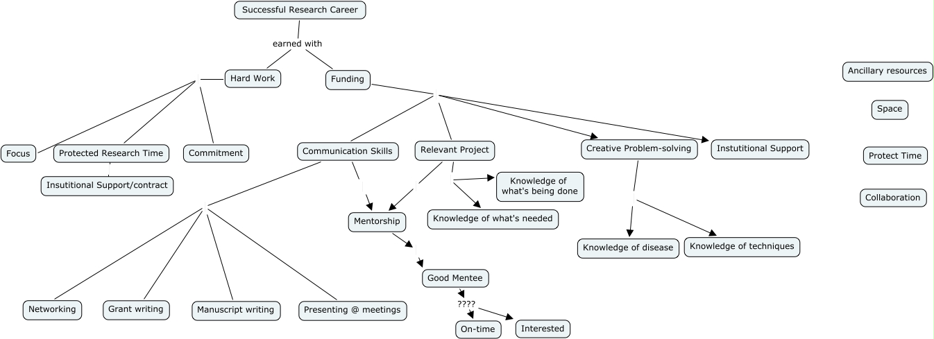 This Concept Map, created with IHMC CmapTools, has information related to: reeves map 1, Protected Research Time Insutitional Support/contract, Funding Instutitional Support, Hard Work Protected Research Time, Communication Skills Manuscript writing, Relevant Project Mentorship, Creative Problem-solving Knowledge of disease, Successful Research Career earned with Hard Work, Funding Communication Skills, Hard Work Commitment, Relevant Project Knowledge of what's needed, Creative Problem-solving Knowledge of techniques, Successful Research Career earned with Funding, Communication Skills Mentorship, Relevant Project Knowledge of what's being done, Funding Creative Problem-solving, Communication Skills Grant writing, Good Mentee ???? Interested, Good Mentee ???? On-time, Mentorship Good Mentee, Communication Skills Presenting @ meetings