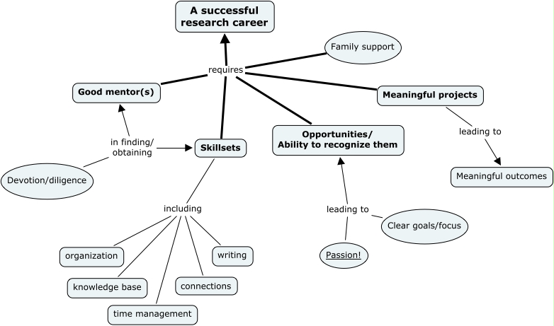 This Concept Map, created with IHMC CmapTools, has information related to: HaeseongParkMap2, Skillsets including writing, Meaningful projects requires Family support, Clear goals/focus leading to Opportunities/ Ability to recognize them, Skillsets including connections, Skillsets including organization, Meaningful projects requires Skillsets, Skillsets including knowledge base, Devotion/diligence in finding/ obtaining Skillsets, Passion! leading to Opportunities/ Ability to recognize them, Devotion/diligence in finding/ obtaining Good mentor(s), Meaningful projects leading to Meaningful outcomes, Skillsets including time management, Meaningful projects requires Good mentor(s), Meaningful projects requires Opportunities/ Ability to recognize them, Meaningful projects requires A successful research career