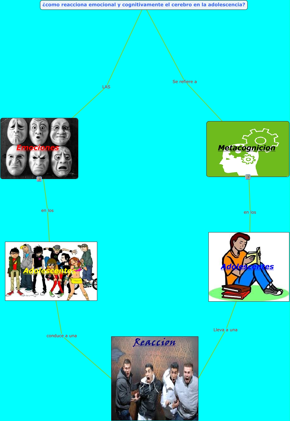 Este Cmap, tiene información relacionada con: HERMOSOS CEREBROS, Adolescentes Lleva a una Reaccion, Metacognicion en los Adolescentes, Emociones en los Adolescentes, ¿como reacciona emocional y cognitivamente el cerebro en la adolescencia? LAS Emociones, ¿como reacciona emocional y cognitivamente el cerebro en la adolescencia? Se refiere a Metacognicion, Adolescentes conduce a una Reaccion