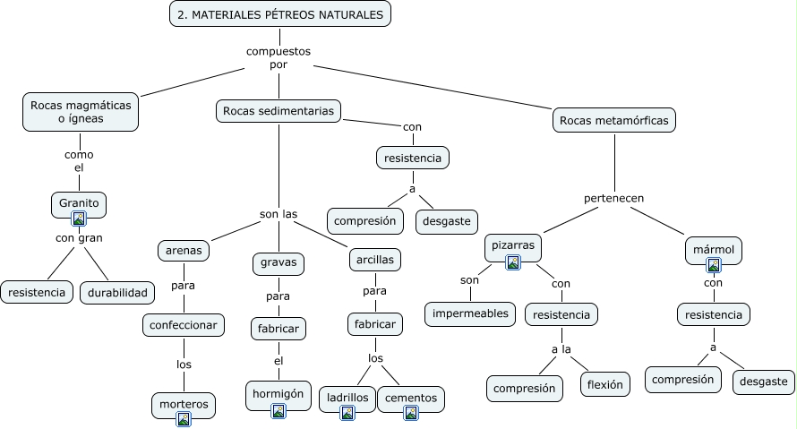 Este Cmap, tiene información relacionada con: Materiales_pétreos_naturales, confeccionar los morteros, Granito con gran durabilidad, gravas para fabricar, Rocas magmáticas o ígneas como el Granito, resistencia a la compresión, Rocas sedimentarias son las arenas, Rocas metamórficas pertenecen mármol, resistencia a compresión, Granito con gran resistencia, resistencia a desgaste, 2. MATERIALES PÉTREOS NATURALES compuestos por Rocas metamórficas, Rocas sedimentarias son las arcillas, pizarras son impermeables, fabricar el hormigón, fabricar los ladrillos, Rocas sedimentarias son las gravas, mármol con resistencia, resistencia a desgaste, fabricar los cementos, 2. MATERIALES PÉTREOS NATURALES compuestos por Rocas magmáticas o ígneas