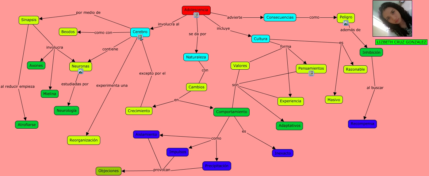 Este Cmap, tiene información relacionada con: Hermosos Cerebros, Comportamiento es Inexacto, Valores son Adaptativos, Comportamiento son Adaptativos, Neuronas estudiadas por Neurología, Comportamiento como Aislamiento, Naturaleza con Cambios, Cerebro por medio de Sinapsis, Cultura forma Pensamientos, Adolescencia se da por Naturaleza, Impulsos provocan Objeciones, Adolescencia involucra al Cerebro, Cultura es Razonable, Cerebro experimenta una Reorganización, Cerebro como con Beodos, Cultura forma Experiencia, Cultura es Masivo, Cerebro contiene Neuronas, Crecimiento excepto por el Cerebro, Adolescencia advierte Consecuencias, Cultura forma Valores