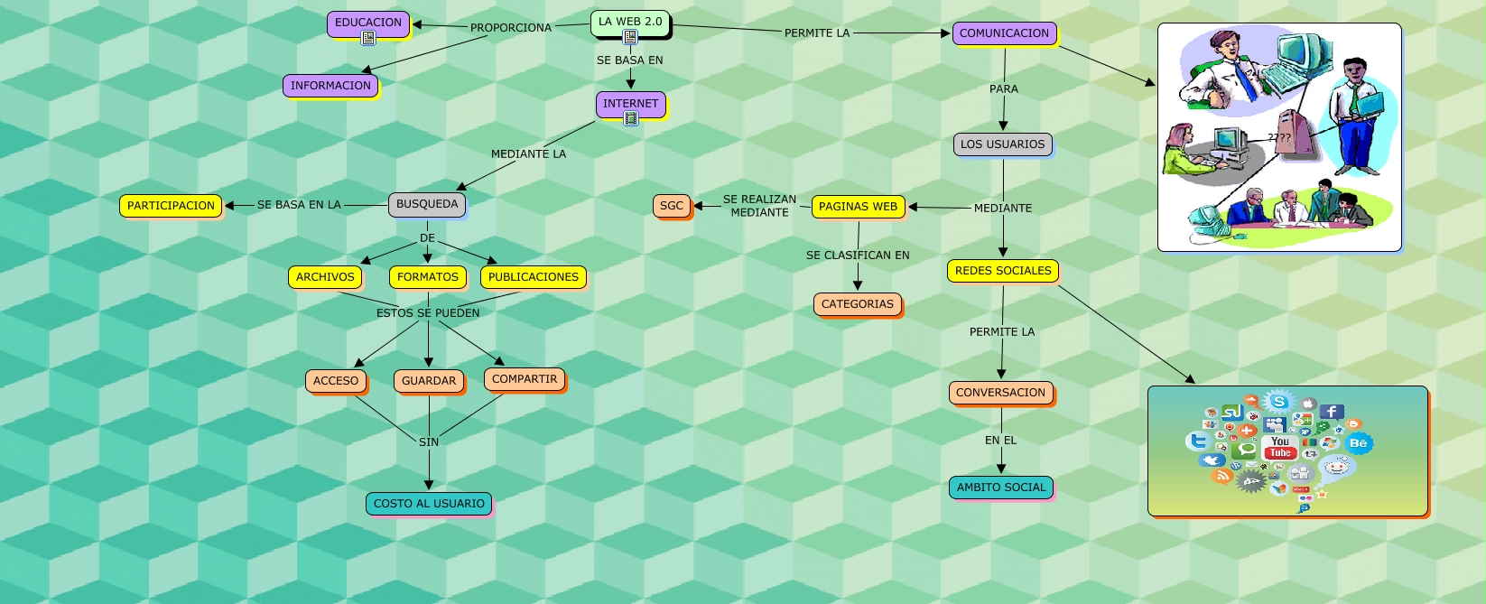 This Concept Map, created with IHMC CmapTools, has information related to: WEB 2.0, REDES SOCIALES ????, LA WEB 2.0 PERMITE LA COMUNICACION, BUSQUEDA DE PUBLICACIONES, BUSQUEDA DE FORMATOS, FORMATOS ESTOS SE PUEDEN COMPARTIR, LA WEB 2.0 PROPORCIONA EDUCACION, BUSQUEDA DE ARCHIVOS, FORMATOS ESTOS SE PUEDEN ACCESO, FORMATOS ESTOS SE PUEDEN GUARDAR, PAGINAS WEB SE CLASIFICAN EN CATEGORIAS, CONVERSACION EN EL AMBITO SOCIAL, GUARDAR SIN COSTO AL USUARIO, BUSQUEDA SE BASA EN LA PARTICIPACION, LOS USUARIOS MEDIANTE PAGINAS WEB, ACCESO SIN COSTO AL USUARIO, PAGINAS WEB SE REALIZAN MEDIANTE SGC, LA WEB 2.0 PROPORCIONA INFORMACION, COMPARTIR SIN COSTO AL USUARIO, FORMATOS ESTOS SE PUEDEN ARCHIVOS, INTERNET MEDIANTE LA BUSQUEDA