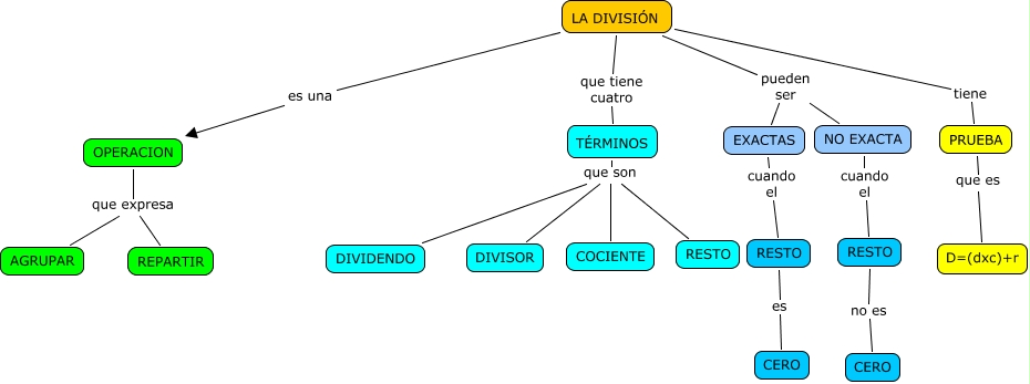 Este Cmap, tiene información relacionada con: LA DIVISIÓN-Daniel, NO EXACTA cuando el RESTO, TÉRMINOS que son DIVIDENDO, LA DIVISIÓN que tiene cuatro TÉRMINOS, OPERACION que expresa AGRUPAR, PRUEBA que es D=(dxc)+r, LA DIVISIÓN tiene PRUEBA, TÉRMINOS que son RESTO, EXACTAS cuando el RESTO, TÉRMINOS que son COCIENTE, RESTO no es CERO, OPERACION que expresa REPARTIR, LA DIVISIÓN pueden ser NO EXACTA, LA DIVISIÓN pueden ser EXACTAS, TÉRMINOS que son DIVISOR, LA DIVISIÓN es una OPERACION, RESTO es CERO