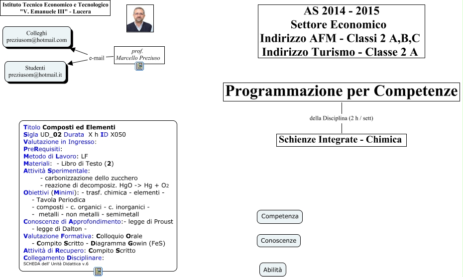 Questa Cmap, creata con IHMC CmapTools, contiene informazioni relative a: UdA_201 - Composti ed Elementi, Programmazione per Competenze della Disciplina (2 h / sett) Schienze Integrate - Chimica, prof. Marcello Preziuso e-mail Studenti preziusom@hotmail.it, prof. Marcello Preziuso e-mail Colleghi preziusom@hotmail.com