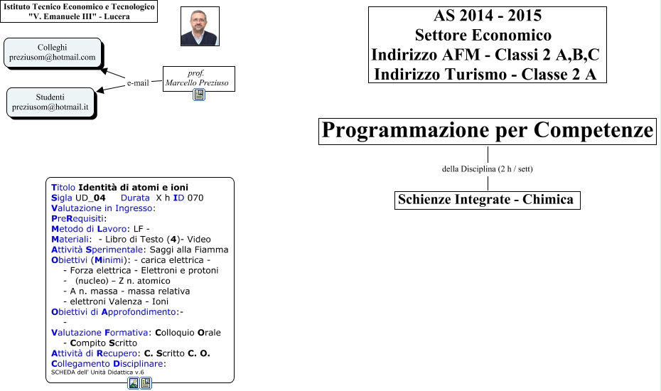 Questa Cmap, creata con IHMC CmapTools, contiene informazioni relative a: UdA_202 - Atomi e Ioni, Programmazione per Competenze della Disciplina (2 h / sett) Schienze Integrate - Chimica, prof. Marcello Preziuso e-mail Colleghi preziusom@hotmail.com, prof. Marcello Preziuso e-mail Studenti preziusom@hotmail.it
