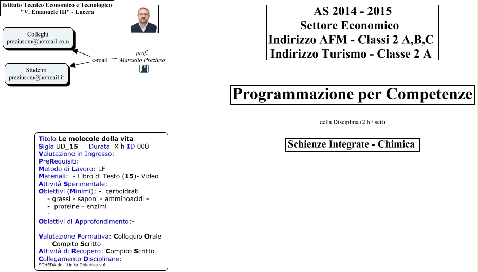 Questa Cmap, creata con IHMC CmapTools, contiene informazioni relative a: UdA_205 - Le molecole della vita, Programmazione per Competenze della Disciplina (2 h / sett) Schienze Integrate - Chimica, prof. Marcello Preziuso e-mail Colleghi preziusom@hotmail.com, prof. Marcello Preziuso e-mail Studenti preziusom@hotmail.it