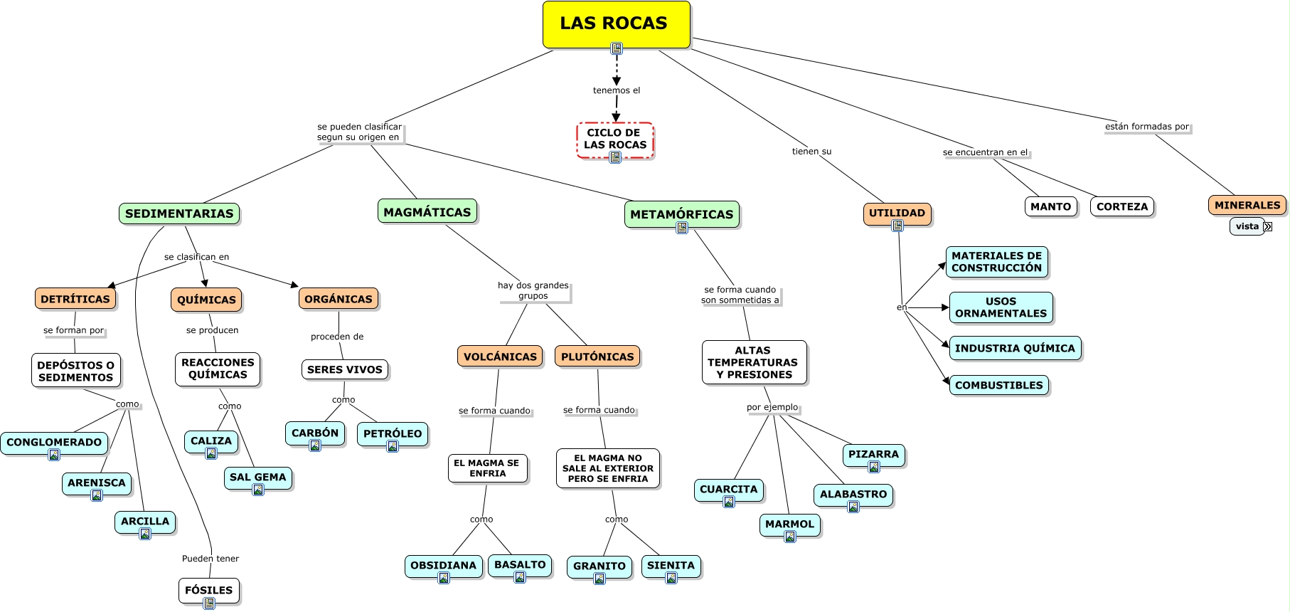 Este Cmap, tiene información relacionada con: Las rocas, Explotaciones a cielo abierto. Minas en la extracción hay dos partes Ganga: parte que no se aprovecha = impurezas, MINERALES con estas propiedades, SEDIMENTARIAS se clasifican en QUÍMICAS, características como Ser natural Origen inorgánico Composición química homogénea, REACCIONES QUÍMICAS como CALIZA, EL MAGMA SE ENFRIA como BASALTO, MAGMÁTICAS hay dos grandes grupos PLUTÓNICAS, SEDIMENTARIAS se clasifican en ORGÁNICAS, UTILIDAD en COMBUSTIBLES, ALTAS TEMPERATURAS Y PRESIONES por ejemplo MARMOL, LAS ROCAS se pueden clasificar segun su origen en SEDIMENTARIAS, UTILIDAD en MATERIALES DE CONSTRUCCIÓN, SEDIMENTARIAS Pueden tener FÓSILES, MINERALES ejemplos Diamante Grafito Talco Cuarzo Mica Blenda (Zn) Cinabrio (Hg) Galena (Pb) Pirita (Fe y S) Bauxita (Al) Oro (Au), DEPÓSITOS O SEDIMENTOS como CONGLOMERADO, ORGÁNICAS proceden de SERES VIVOS, DEPÓSITOS O SEDIMENTOS como ARCILLA, LAS ROCAS se pueden clasificar segun su origen en METAMÓRFICAS, ALTAS TEMPERATURAS Y PRESIONES por ejemplo CUARCITA, UTILIDAD en USOS ORNAMENTALES