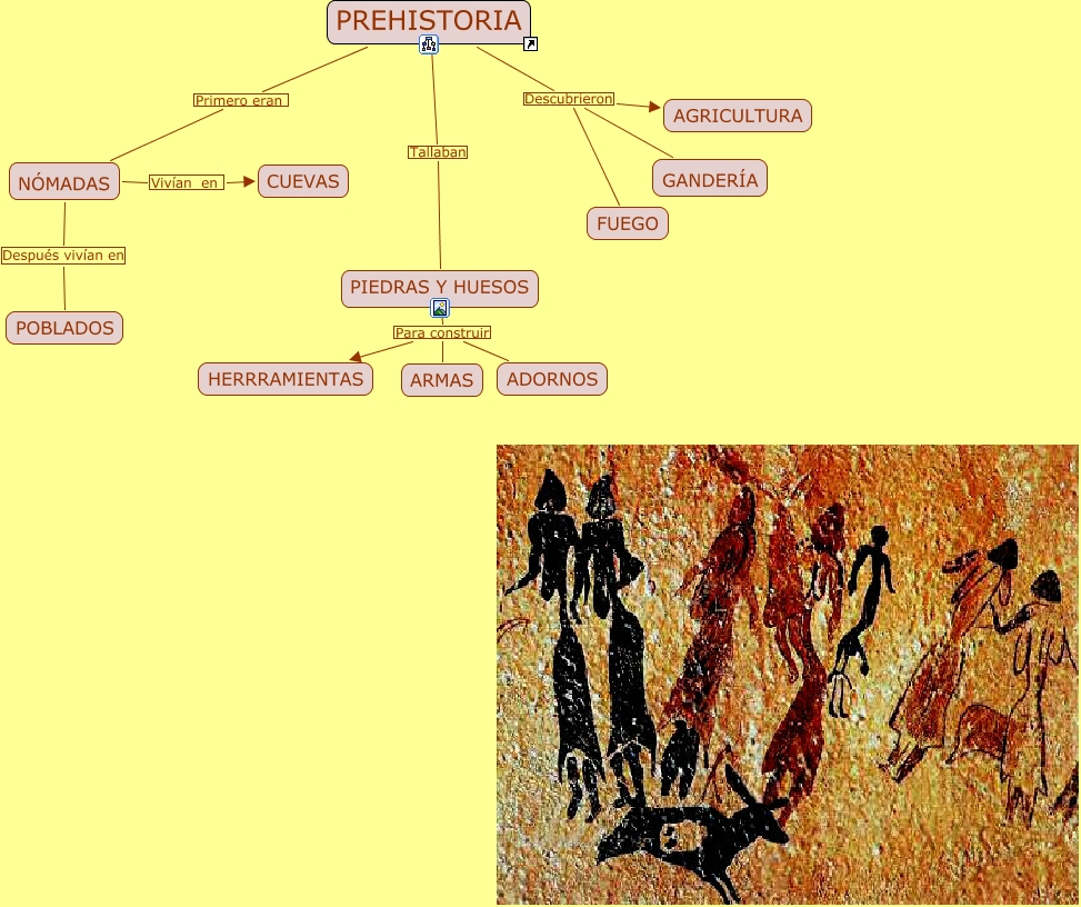 Este Cmap, tiene información relacionada con: PREHISTORIA, PREHISTORIA Tallaban PIEDRAS Y HUESOS, PIEDRAS Y HUESOS Para construir ADORNOS, PREHISTORIA Descubrieron AGRICULTURA, PREHISTORIA Descubrieron GANDER�?A, PREHISTORIA Primero eran NÓMADAS, PIEDRAS Y HUESOS Para construir ARMAS, PREHISTORIA Descubrieron FUEGO, NÓMADAS Vivían en CUEVAS, PIEDRAS Y HUESOS Para construir HERRRAMIENTAS, NÓMADAS Después vivían en POBLADOS