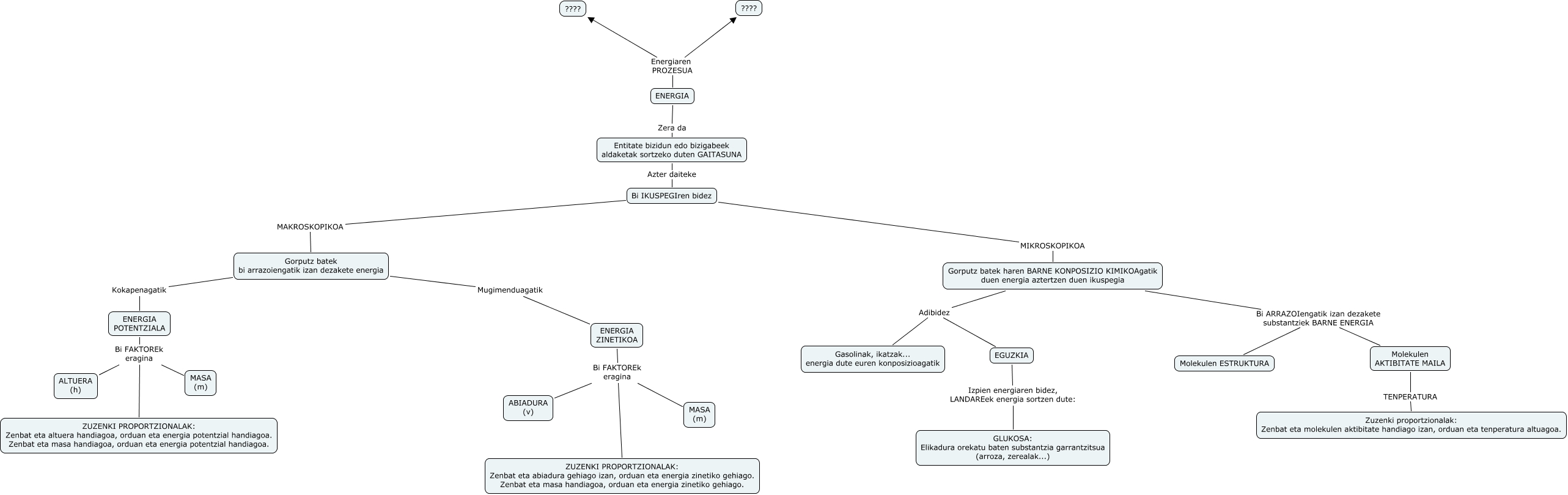 Este Cmap, tiene información relacionada con: hezkuntza166, Gorputz batek haren BARNE KONPOSIZIO KIMIKOAgatik duen energia aztertzen duen ikuspegia Adibidez Gasolinak, ikatzak... energia dute euren konposizioagatik, ENERGIA POTENTZIALA Bi FAKTOREk eragina ALTUERA (h), Gorputz batek haren BARNE KONPOSIZIO KIMIKOAgatik duen energia aztertzen duen ikuspegia Bi ARRAZOIengatik izan dezakete substantziek BARNE ENERGIA Molekulen AKTIBITATE MAILA, ENERGIA Zera da Entitate bizidun edo bizigabeek aldaketak sortzeko duten GAITASUNA, Bi IKUSPEGIren bidez MIKROSKOPIKOA Gorputz batek haren BARNE KONPOSIZIO KIMIKOAgatik duen energia aztertzen duen ikuspegia, ENERGIA POTENTZIALA Bi FAKTOREk eragina ZUZENKI PROPORTZIONALAK: Zenbat eta altuera handiagoa, orduan eta energia potentzial handiagoa. Zenbat eta masa handiagoa, orduan eta energia potentzial handiagoa., Gorputz batek haren BARNE KONPOSIZIO KIMIKOAgatik duen energia aztertzen duen ikuspegia Adibidez EGUZKIA, Entitate bizidun edo bizigabeek aldaketak sortzeko duten GAITASUNA Azter daiteke Bi IKUSPEGIren bidez, ENERGIA ZINETIKOA Bi FAKTOREk eragina ABIADURA (v), ENERGIA ZINETIKOA Bi FAKTOREk eragina ZUZENKI PROPORTZIONALAK: Zenbat eta abiadura gehiago izan, orduan eta energia zinetiko gehiago. Zenbat eta masa handiagoa, orduan eta energia zinetiko gehiago., Gorputz batek bi arrazoiengatik izan dezakete energia Kokapenagatik ENERGIA POTENTZIALA, Bi IKUSPEGIren bidez MAKROSKOPIKOA Gorputz batek bi arrazoiengatik izan dezakete energia, ENERGIA Energiaren PROZESUA ????, Gorputz batek bi arrazoiengatik izan dezakete energia Mugimenduagatik ENERGIA ZINETIKOA, Molekulen AKTIBITATE MAILA TENPERATURA Zuzenki proportzionalak: Zenbat eta molekulen aktibitate handiago izan, orduan eta tenperatura altuagoa., Gorputz batek haren BARNE KONPOSIZIO KIMIKOAgatik duen energia aztertzen duen ikuspegia Bi ARRAZOIengatik izan dezakete substantziek BARNE ENERGIA Molekulen ESTRUKTURA, ENERGIA POTENTZIALA Bi FAKTOREk eragina MASA (m), EGUZKIA Izpien energiaren bidez, LANDAREek energia sortzen dute: GLUKOSA: Elikadura orekatu baten substantzia garrantzitsua (arroza, zerealak...), ENERGIA Energiaren PROZESUA ????, ENERGIA ZINETIKOA Bi FAKTOREk eragina MASA (m)