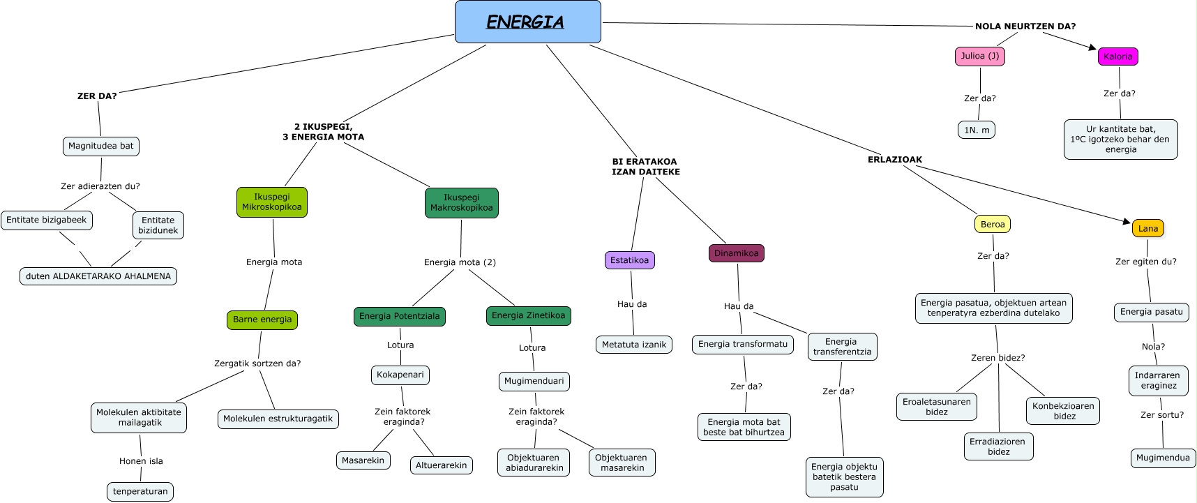 Este Cmap, tiene información relacionada con: hezkuntza18, Energia Potentziala Lotura Kokapenari, Beroa Zer da? Energia pasatua, objektuen artean tenperatyra ezberdina dutelako, ENERGIA ERLAZIOAK Beroa, Energia pasatua, objektuen artean tenperatyra ezberdina dutelako Zeren bidez? Konbekzioaren bidez, Molekulen aktibitate mailagatik Honen isla tenperaturan, Energia pasatua, objektuen artean tenperatyra ezberdina dutelako Zeren bidez? Eroaletasunaren bidez, Energia pasatua, objektuen artean tenperatyra ezberdina dutelako Zeren bidez? Erradiazioren bidez, Entitate bizigabeek duten ALDAKETARAKO AHALMENA, Mugimenduari Zein faktorek eraginda? Objektuaren abiadurarekin, Barne energia Zergatik sortzen da? Molekulen aktibitate mailagatik, Ikuspegi Makroskopikoa Energia mota (2) Energia Zinetikoa, Julioa (J) Zer da? 1N. m, ENERGIA BI ERATAKOA IZAN DAITEKE Dinamikoa, Energia Zinetikoa Lotura Mugimenduari, Energia transferentzia Zer da? Energia objektu batetik bestera pasatu, Ikuspegi Mikroskopikoa Energia mota Barne energia, ENERGIA 2 IKUSPEGI, 3 ENERGIA MOTA Ikuspegi Mikroskopikoa, Indarraren eraginez Zer sortu? Mugimendua, Barne energia Zergatik sortzen da? Molekulen estrukturagatik, ENERGIA 2 IKUSPEGI, 3 ENERGIA MOTA Ikuspegi Makroskopikoa