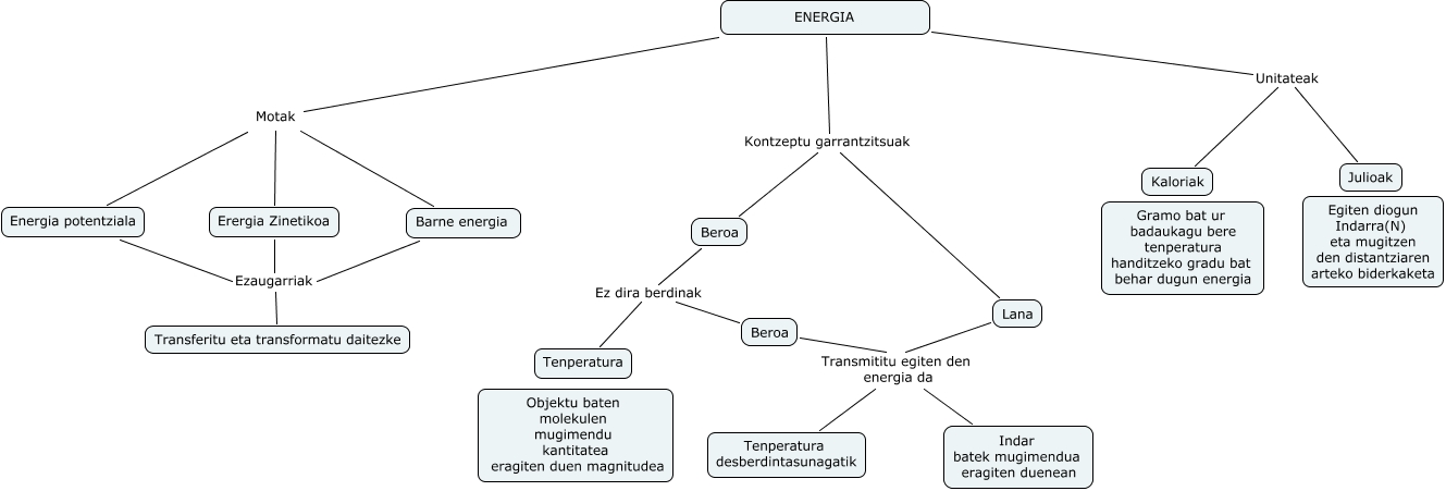 Este Cmap, tiene información relacionada con: Hezkuntza_121, Erergia Zinetikoa Ezaugarriak Transferitu eta transformatu daitezke, Barne energia Ezaugarriak Transferitu eta transformatu daitezke, ENERGIA Unitateak Julioak, Beroa Transmititu egiten den energia da Tenperatura desberdintasunagatik, ENERGIA Motak Erergia Zinetikoa, ENERGIA Unitateak Kaloriak, ENERGIA Kontzeptu garrantzitsuak Beroa, ENERGIA Motak Energia potentziala, Beroa Transmititu egiten den energia da Indar batek mugimendua eragiten duenean, Lana Transmititu egiten den energia da Tenperatura desberdintasunagatik, ENERGIA Kontzeptu garrantzitsuak Lana, Energia potentziala Ezaugarriak Transferitu eta transformatu daitezke, Beroa Ez dira berdinak Tenperatura, Beroa Ez dira berdinak Beroa, ENERGIA Motak Barne energia, Lana Transmititu egiten den energia da Indar batek mugimendua eragiten duenean