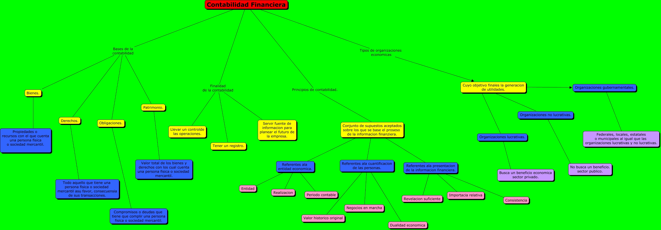 Este Cmap, tiene información relacionada con: mapa conceptual_contabilidad.cmap, Contabilidad Financiera Finalidad de la contabilidad Tener un registro., Cuyo objetivo finales la generacion de utilidades. ???? Organizaciones lucrativas., Referentes ala entidad economica. ???? Entidad, Referentes ala entidad economica. ???? Realizacion, Referentes ala cuantificacion de las personas. ???? Valor historico original, Contabilidad Financiera Bases de la contabilidad Obligaciones., Cuyo objetivo finales la generacion de utilidades. ???? Organizaciones no lucrativas., Referentes ala cuantificacion de las personas. ???? Negocios en marcha, Conjunto de supuestos aceptados sobre los que se base el proseso de la informacion finanziera. ???? Referentes ala cuantificacion de las personas., Contabilidad Financiera Bases de la contabilidad Bienes., Organizaciones lucrativas. ???? Busca un beneficio economica sector privado., Contabilidad Financiera Finalidad de la contabilidad Llevar un controlde las operaciones., Contabilidad Financiera Principios de contabilidad. Conjunto de supuestos aceptados sobre los que se base el proseso de la informacion finanziera., Contabilidad Financiera Finalidad de la contabilidad Servir fuente de informacion para planear el futuro de la empresa., Referentes ala entidad economica. ???? Periodo contable, Conjunto de supuestos aceptados sobre los que se base el proseso de la informacion finanziera. ???? Referentes ala entidad economica., Contabilidad Financiera Bases de la contabilidad Derechos., Contabilidad Financiera Tipos de organizaciones economicas Cuyo objetivo finales la generacion de utilidades., Obligaciones. ???? Compromisos o deudas que tiene que complir una persona fisica o sociedad mercantil., Referentes ala presentacion de la informacion financiera. ???? Revelacion suficiente