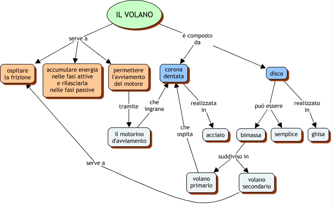 Questa Cmap, creata con IHMC CmapTools, contiene informazioni relative a: Volano, permettere l'avviamento del motore tramite il motorino d'avviamento, IL VOLANO serve a permettere l'avviamento del motore, IL VOLANO serve a ospitare la frizione, bimassa suddiviso in volano primario, disco realizzato in ghisa, disco può essere bimassa, volano secondario serve a ospitare la frizione, bimassa suddiviso in volano secondario, corona dentata realizzata in acciaio, IL VOLANO serve a accumulare energia nelle fasi attive e rilasciarla nelle fasi passive, volano primario che ospita corona dentata, disco può essere semplice, IL VOLANO è composto da corona dentata, IL VOLANO è composto da disco, il motorino d'avviamento che ingrana corona dentata