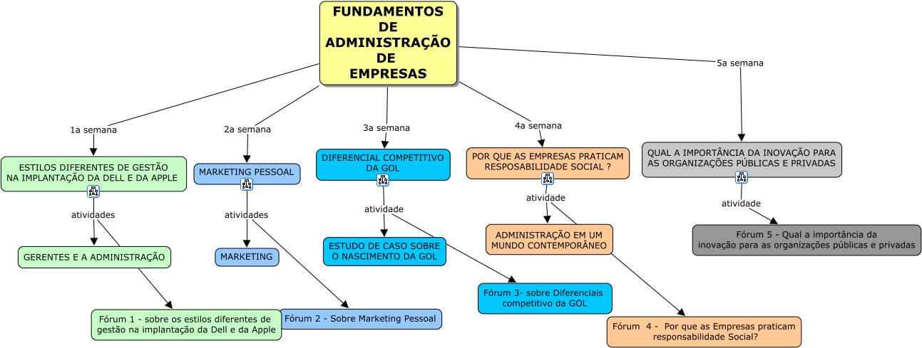 Esse mapa conceitual, produzido no IHMC CmapTools, tem a informação relacionada a: 00. resumo - assuntos, ESTILOS DIFERENTES DE GESTÃO NA IMPLANTAÇÃO DA DELL E DA APPLE atividades Fórum 1 - sobre os estilos diferentes de gestão na implantação da Dell e da Apple, FUNDAMENTOS DE ADMINISTRAÇÃO DE EMPRESAS 5a semana QUAL A IMPORTÂNCIA DA INOVAÇÃO PARA AS ORGANIZAÇÕES PÚBLICAS E PRIVADAS, DIFERENCIAL COMPETITIVO DA GOL atividade ESTUDO DE CASO SOBRE O NASCIMENTO DA GOL, MARKETING PESSOAL atividades Fórum 2 - Sobre Marketing Pessoal, POR QUE AS EMPRESAS PRATICAM RESPOSABILIDADE SOCIAL ? atividade Fórum 4 - Por que as Empresas praticam responsabilidade Social?, FUNDAMENTOS DE ADMINISTRAÇÃO DE EMPRESAS 4a semana POR QUE AS EMPRESAS PRATICAM RESPOSABILIDADE SOCIAL ?, QUAL A IMPORTÂNCIA DA INOVAÇÃO PARA AS ORGANIZAÇÕES PÚBLICAS E PRIVADAS atividade Fórum 5 - Qual a importância da inovação para as organizações públicas e privadas, MARKETING PESSOAL atividades MARKETING, POR QUE AS EMPRESAS PRATICAM RESPOSABILIDADE SOCIAL ? atividade ADMINISTRAÇÃO EM UM MUNDO CONTEMPORÂNEO, FUNDAMENTOS DE ADMINISTRAÇÃO DE EMPRESAS 3a semana DIFERENCIAL COMPETITIVO DA GOL, DIFERENCIAL COMPETITIVO DA GOL atividade Fórum 3- sobre Diferenciais competitivo da GOL, ESTILOS DIFERENTES DE GESTÃO NA IMPLANTAÇÃO DA DELL E DA APPLE atividades GERENTES E A ADMINISTRAÇÃO, FUNDAMENTOS DE ADMINISTRAÇÃO DE EMPRESAS 2a semana MARKETING PESSOAL, FUNDAMENTOS DE ADMINISTRAÇÃO DE EMPRESAS 1a semana ESTILOS DIFERENTES DE GESTÃO NA IMPLANTAÇÃO DA DELL E DA APPLE