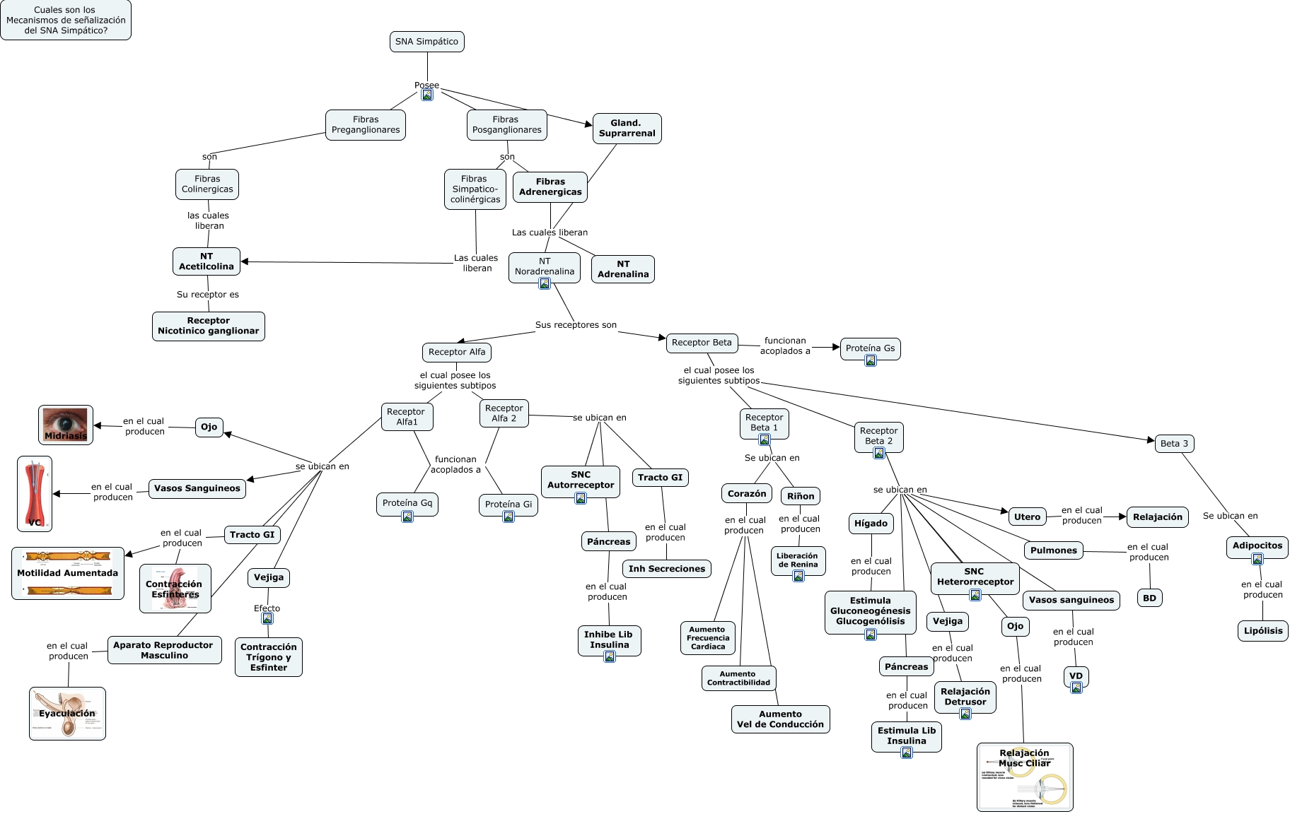 Este Cmap, tiene información relacionada con: Simpatico, Fibras Adrenergicas Las cuales liberan NT Noradrenalina, Tracto GI en el cual producen Inh Secreciones, Receptor Beta 2 se ubican en Utero, Receptor Alfa 2 funcionan acoplados a Proteína Gq, Fibras Adrenergicas Las cuales liberan NT Adrenalina, Ojo en el cual producen Relajación Musc Ciliar, Corazón en el cual producen Aumento Frecuencia Cardíaca, Receptor Beta 2 se ubican en Pulmones, Receptor Beta 2 se ubican en SNC Heterorreceptor, Receptor Beta el cual posee los siguientes subtipos Beta 3, NT Noradrenalina Sus receptores son Receptor Alfa, Gland. Suprarrenal Las cuales liberan NT Adrenalina, Vasos sanguineos en el cual producen VD, Fibras Simpatico- colinérgicas Las cuales liberan NT Acetilcolina, Hígado en el cual producen Estimula Gluconeogénesis Glucogenólisis, Receptor Alfa 2 funcionan acoplados a Proteína Gi, Receptor Alfa1 se ubican en Ojo, Vasos Sanguineos en el cual producen VC, Fibras Posganglionares son Fibras Adrenergicas, Receptor Beta 1 Se ubican en Corazón