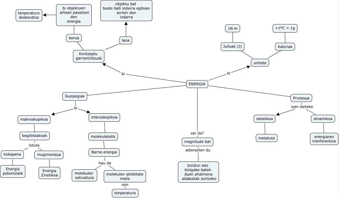 Este Cmap, tiene información relacionada con: Hezkuntza_9, Prozesua izan daiteke dinamikoa, Prozesua izan daiteke estatikoa, begibistakoak lotuta kokapena, Kontzeptu garrantzitsuak ???? lana, mugimendua ???? Energia Zinetikoa, ENERGIA ???? Prozesua, dinamikoa ener energiaren tranferentzia, Ikuspegiak bi mikroskopikoa, estatikoa ???? metatuta, ENERGIA bi unitate, kokapena ???? Energia potentziala, ENERGIA zer da? magnitude bat, begibistakoak lotuta mugimendua, ENERGIA bi Kontzeptu garrantzitsuak, beroa ???? bi objektuen artean pasatzen den energia, Barne energia hau da molekulen aktibitate maila, Kontzeptu garrantzitsuak ???? beroa, Ikuspegiak bi makroskopikoa, mikroskopikoa ???? molekuletatik, unitate ju Julioak (J)