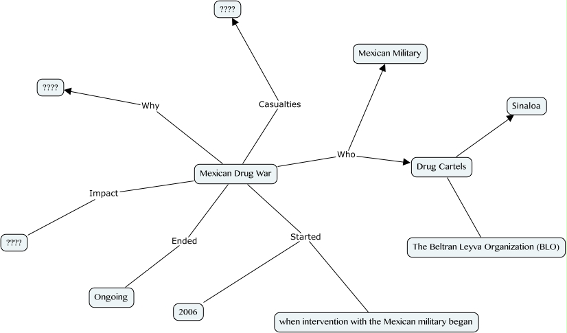 This Concept Map, created with IHMC CmapTools, has information related to: jd mexican drug war, Mexican Drug War Casualties ????, Mexican Drug War Who Drug Cartels, Mexican Drug War Who Mexican Military, Mexican Drug War Why ????, Mexican Drug War Started 2006, Mexican Drug War Impact ????, Mexican Drug War Started when intervention with the Mexican military began, Mexican Drug War Ended Ongoing, Drug Cartels The Beltran Leyva Organization (BLO), Drug Cartels Sinaloa